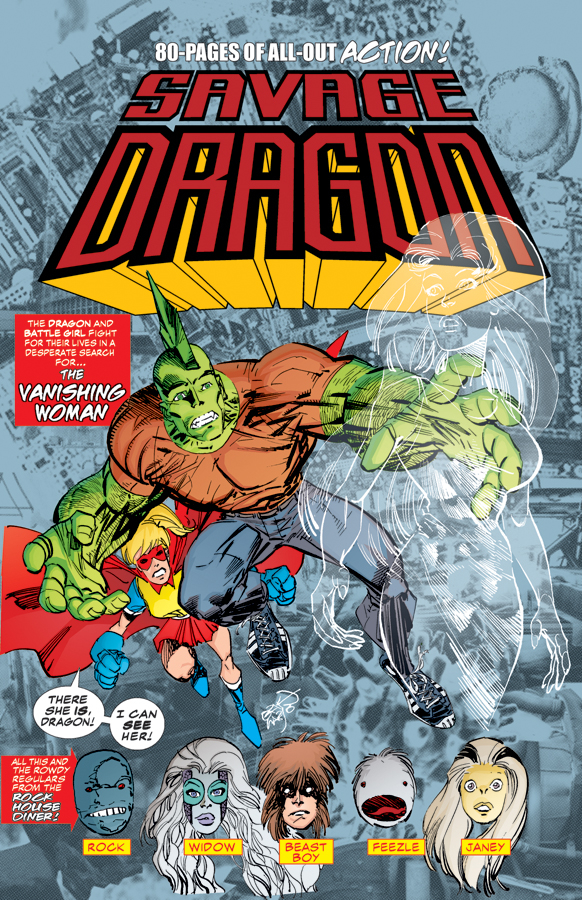 It's 80 pages of all-out action as Dragon begins to unravel the mystery behind Jennifer's disappearance, while the spotlight shines on his supporting cast in the all-new "Rock City Diner" written by ERIK LARSEN and drawn by FRANK FOSCO.