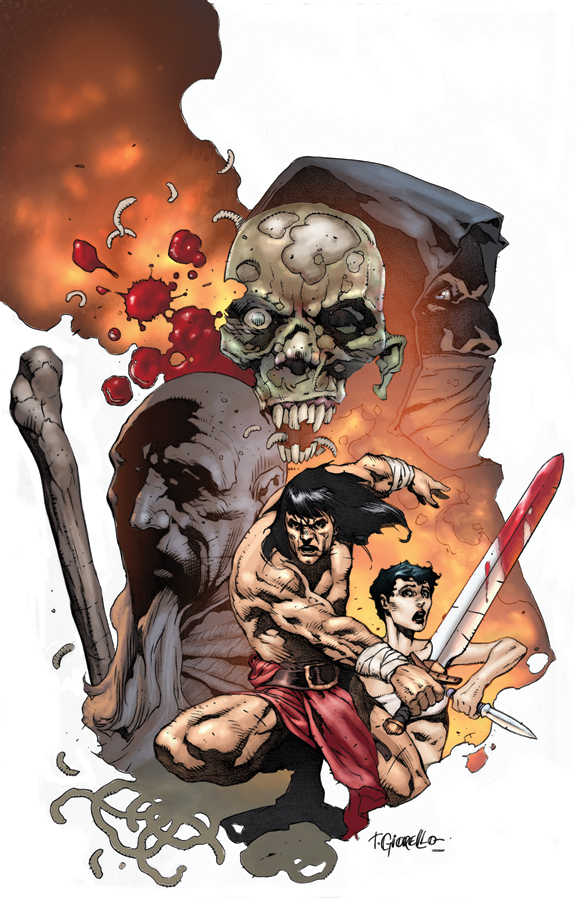 Conan finds himself embroiled in a political struggle turned bloody between a naive young prince and a sinister sorcerer who calls upon the god of the underworld to help aid him in building an army of demonic abominations, intent on conquering not just his own kingdom, but all of Hyboria! But that's not the only danger that threatens to destroy Conan's world. Little does he know, a piece of his past still follows him, stalking the Cimmerian with the patience of the grave. All roads lead to the doomed city of Yaralet in this stunning adaptation of Robert E. Howard's lost fragment "The Hand of Nergal."