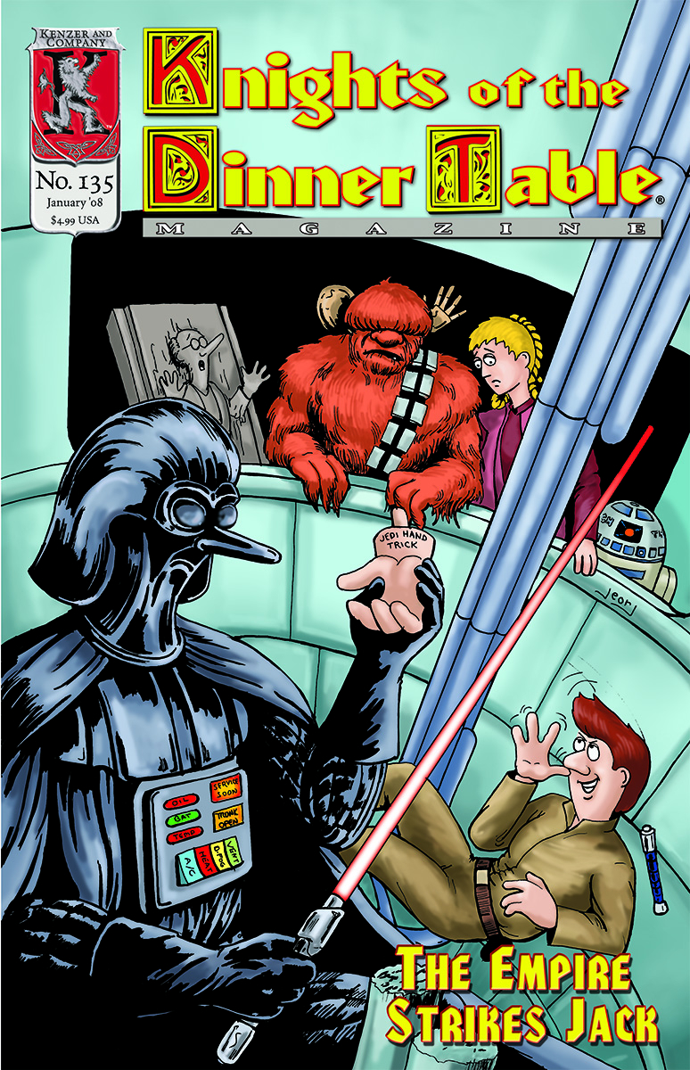 Knights of the Dinner Table is a multiple award-winning periodical featuring the gaming industry's most popular comic strip, as well as being a full-fledged gaming magazine. That's right, more than half of each issue is devoted to reviews, adventure ideas and tips, maps, monsters, NPCs, magic items, and many other articles for a wide variety of games and game systems, written from a gamer's perspective. A hilarious and hysterical slice of (fantasy) life in strips, features and a wonderful celebration of the gaming culture!