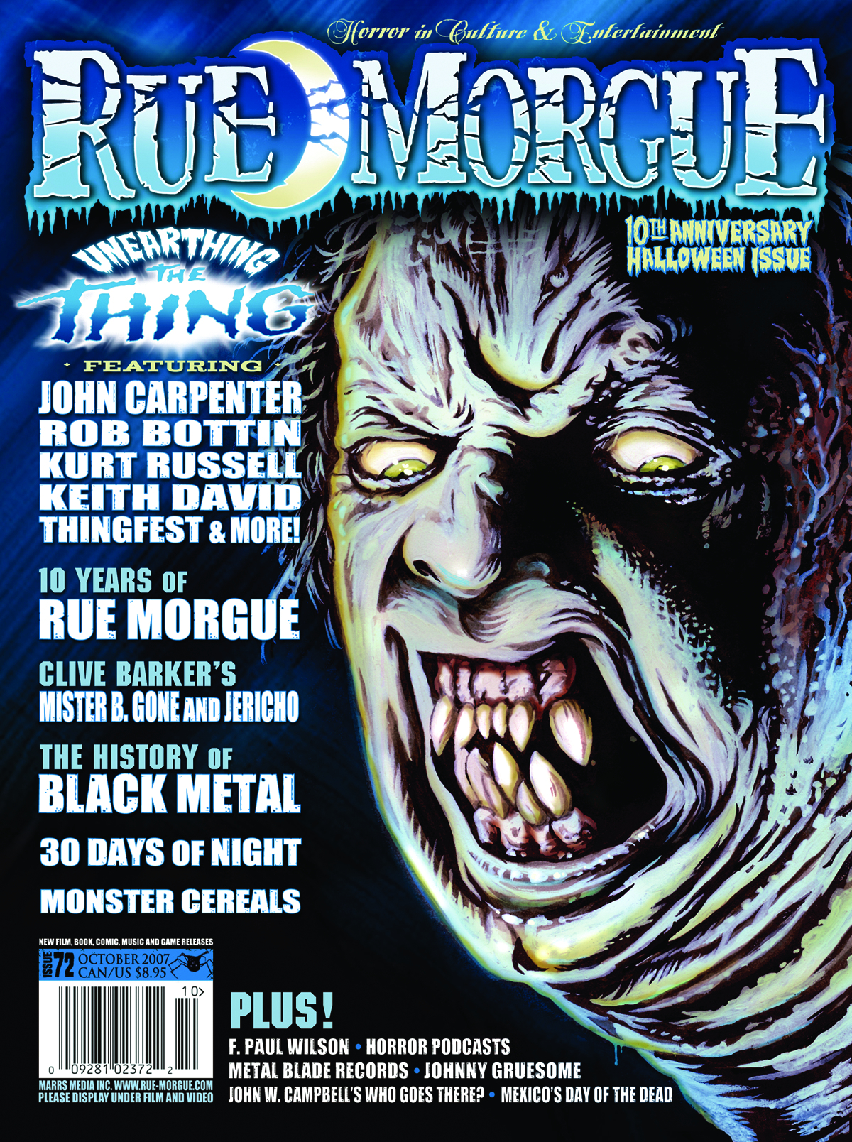 Rue Morgue Magazine is North America's original publication for horror in print and entertainment! Get exclusive interviews with horror favorites, ranging from George A. Romero, Takashi Miike, Rob Zombie, John Carpenter, Tom Savini, and many others! Check out the regular columns as well: "Note From the Underground," "Post-Mortem," "Cinemacabre," "Dreadlines," "The Coroner's Report," "The Gore-Met," and tons of others, all which will fill you with a frightful amount of horror knowledge!
