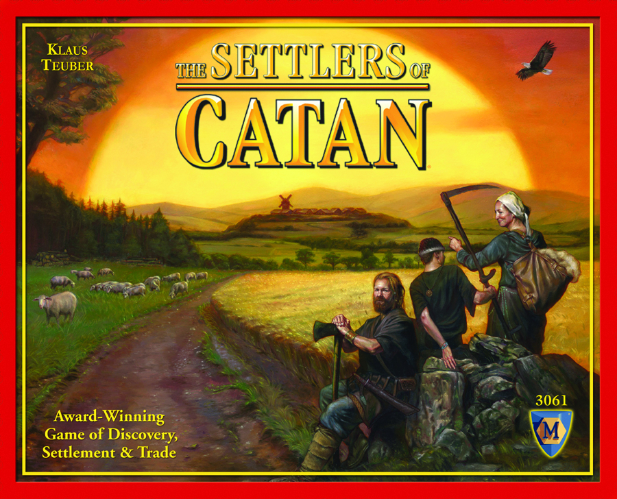 Settlers of Catan, players control a group of settlers exploring and taming the uncharted lands of Catan. Build settlements, roads, and villages by taking commodities from the land around you! This revised edition also includes a game tray designed to hold the 5-6 player extension components.