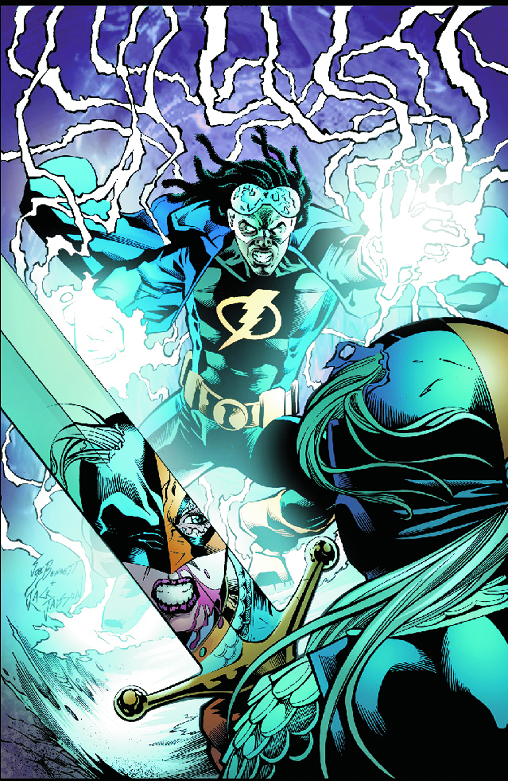 The hidden champion of the Dark Side club is revealed - Milestone's own Static, in his shocking introduction to the modern DC Universe! Since proving too powerful for the confines of the Club, Static has been kept under lock, key and heavy sedation in its basement cells. Now he's unleashed against Ravager as her ultimate test!