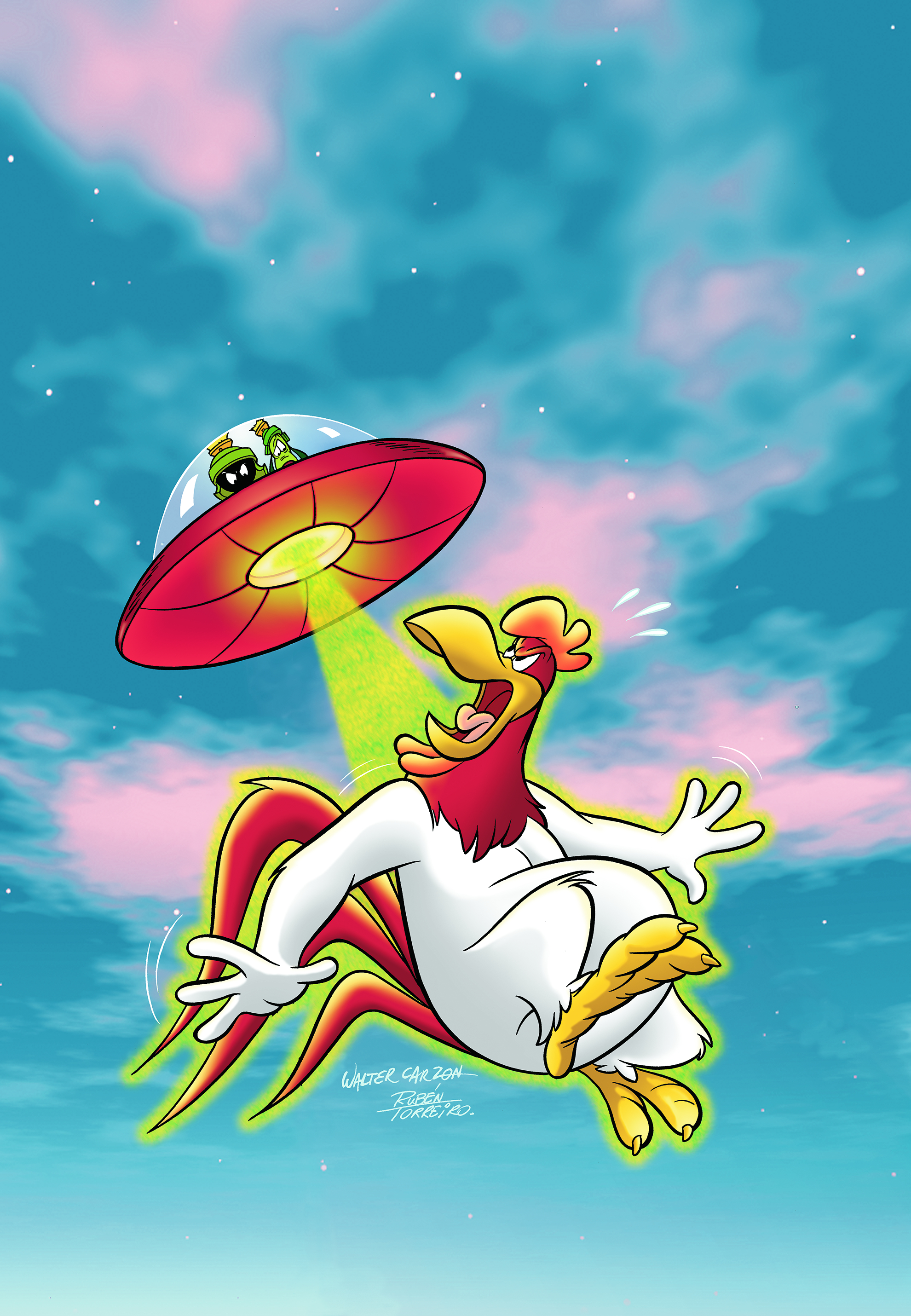 In this reprint of LOONEY TUNES #136, Marvin the Martian has returned to Earth because Mars needs Chickens-and Foghorn Leghorn is at the top, I say top, of his list! Also, Daffy and Porky Pig travel back in time and Foghorn returns from space to match wits and hockey sticks with Dawg!