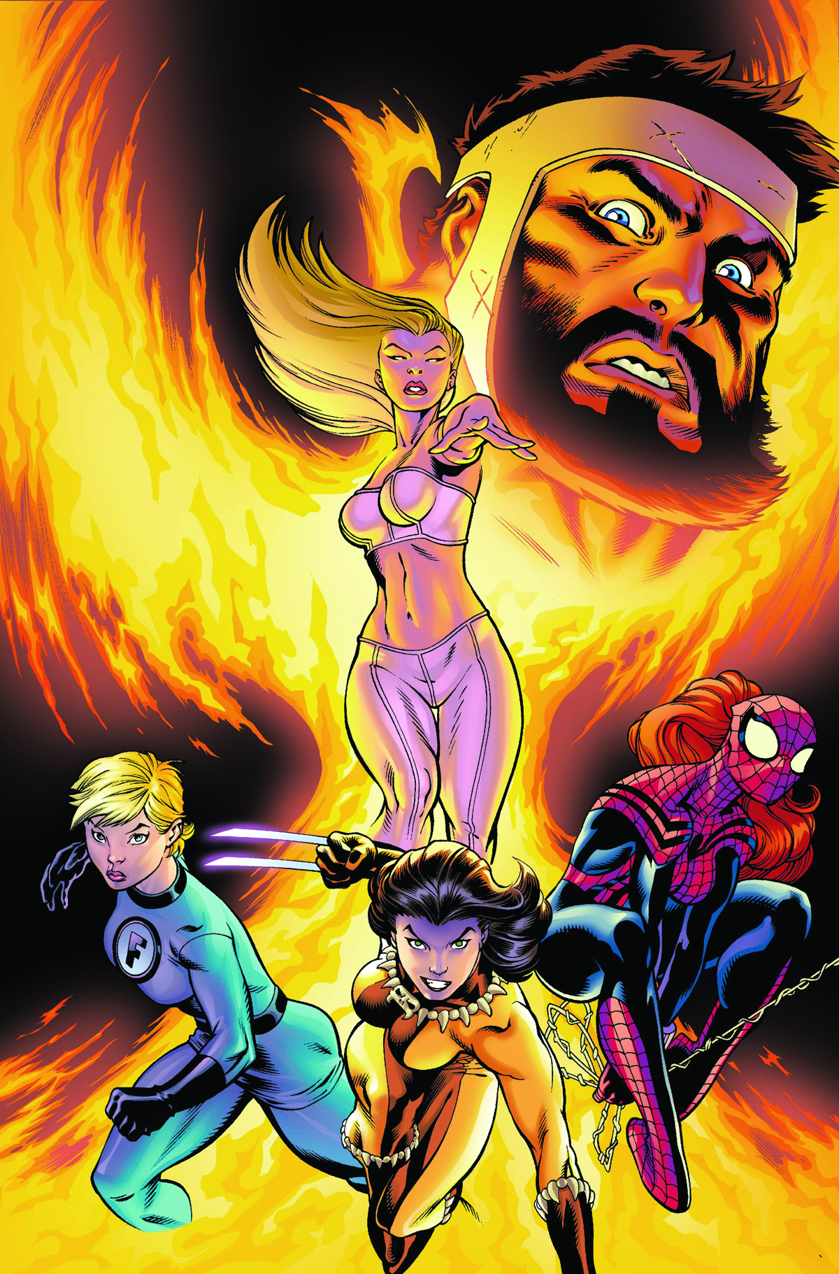 MS. FANTASTIC! X-23, the WOLVERINE! Mary-Jane Parker, the Spectacular SPIDER-WOMAN! Emma "WHITE PHOENIX" Frost! These are the AVENGERS of the United States of Amazonia now that the World Axis has shifted -- and they've got the last fighter for men's liberation, Hercules, in their sights!