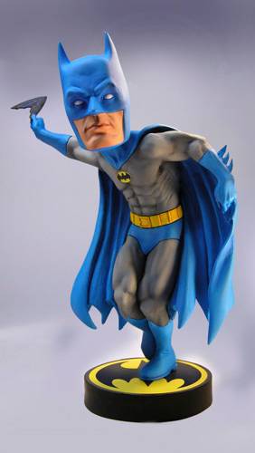 From NECA. The Caped Crusader stands ready to fight crime! From the classic DC Comics, this Batman Head Knocker is a stern warning to would-be criminals near your desk or shelf. The figure is cast in resin and then hand painted for incredible detail. Stands approximately 8" tall with bobbling head - perfect for fans young and old! Comes in collectible matte packaging with spot gloss finish.