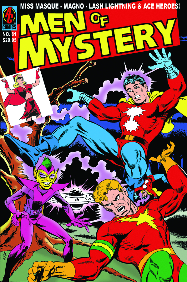 Four Favorites #3, along with other stories. Though almost forgotten today, Ace Comics was an important player in the formative years of the comic book's development. See Magno, Vulcan, The Sword, Raven, Lash Lightning and other forgotten Ace superheroes! Plus, favorites Miss Masque, Dollman, Minute Man and others, in full-story reprints.