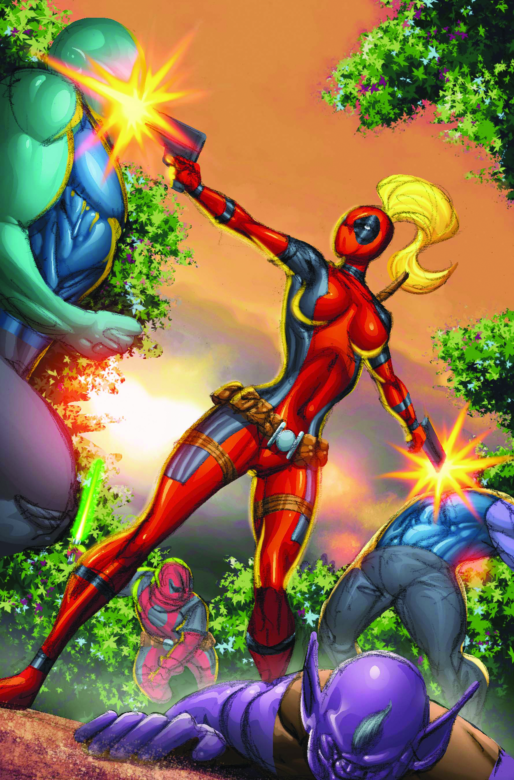 Overnight, the Krook home world has been turned into a modern society, much to the chagrin of the Krook King who champions their idyllic, primitive lifestyle. Now the king plots a rebellion to seize power back from his overly ambitious (but extremely hot) daughter Princes Teela. With Deadpool raising an army on one side, and Lady Deadpool rallying forces on the other, we could be heading for a confrontation which will doom an entire civilization.
