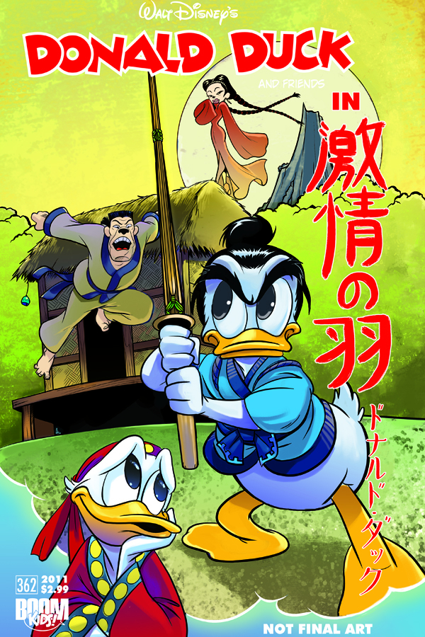 After months and months of kung-fu training, Donald Duck has finally become a master of nothing. But he's not going to let that stop him from striking out on a mission to become Hollywood's latest martial arts movie star! Can the would-be web-footed warrior parlay his acting chopsticks into a life of glitz and glamour? Find out in the final chapter of "Feathers of Fury!"