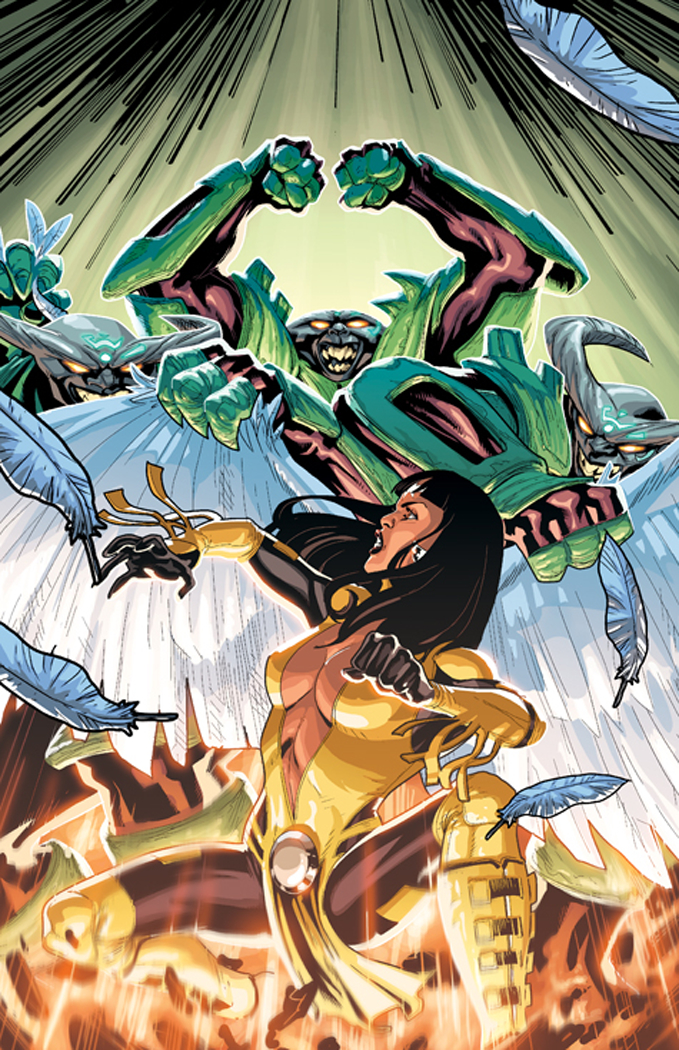 Our team of time-stranded Legionnaires must do battle with Alastor, the hulking bio-terrorist who has unleashed his lethal future virus in the present-day DCU! But before they arrive on the scene, Dawnstar must try to survive the behemoth alone!