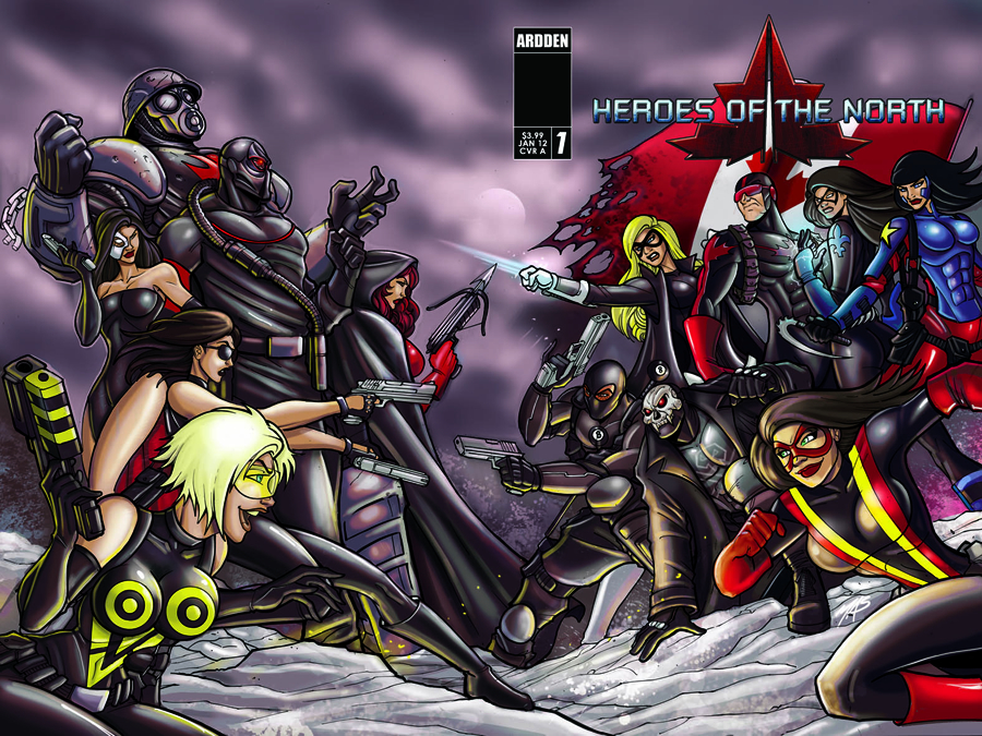 Heroes of the North saga begins here! When the threat of an international terrorist organization looms, ready to strike North America, the Canadian government is forced to put together an elite team of superheroes - heroes who kill. This exciting one-shot relates the dark origins of the controversial Canadian Shield; electro-blasting femme fatale Fleur-de-Lys; drug-addicted nanobot-enhanced Black Terror; loud mouth ninja 8 Ball; west coast speedster Pacifica; and the sultry queens of evil: the disfigured Madame Doom and the deadly Hornet.