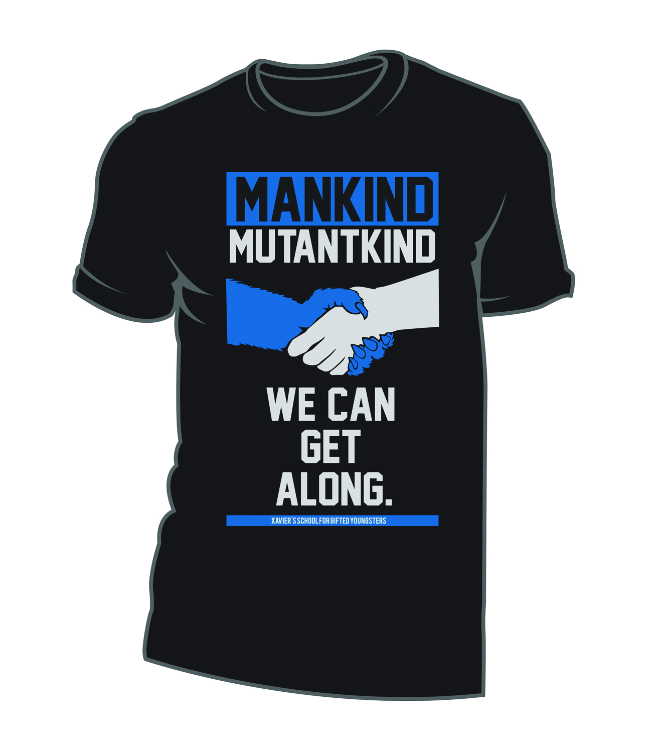 The inclusive message of the X-Men is immortalized on this propaganda-style black t-shirt!