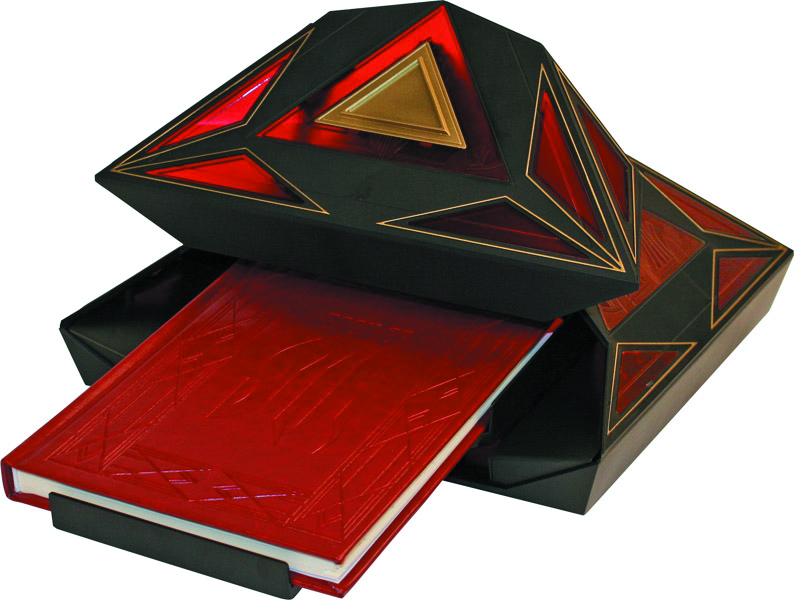 The black-and-red pyramid-shaped Sith case appears innocuous. But with the touch of a button, the door of the case lifts, accompanied by lights and