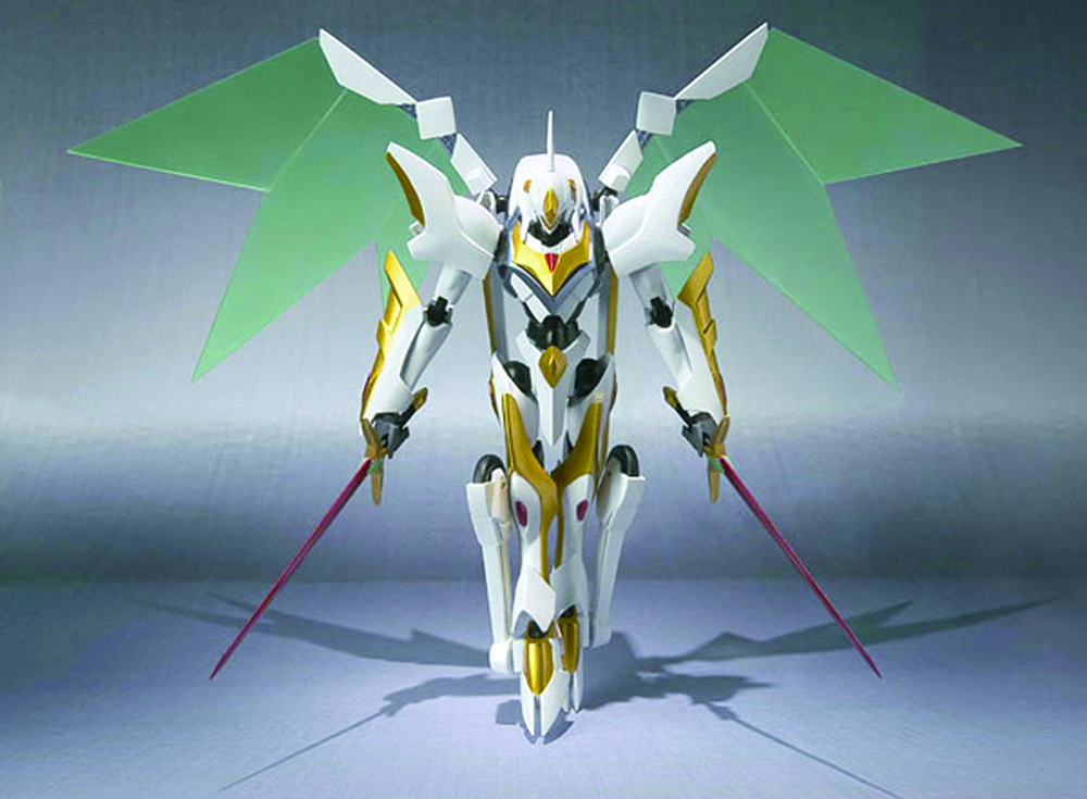 Code Geass: Lelouch of the Rebellion joins the advanced Robot Spirits in a larger size and in evolved form with superior articulation, high precision, and generous accessories. Product development of the Robot Spirits Lancelot was overseen by Code Geass animation director Eiji Nakada and reflects the latest developments in action figure technology to enable accurate portrayal of intense action scenes from the anime. A full arsenal of accessories are included in the set: Maser Vibration Swords, interchangeable Slash Harkens, VARIS rifle, Blaze Luminous shield, interchangeable parts of Messer mode, interchangeable hand parts, and special jointed Tamashii Stage display stand. Figure stands 5" tall. Window box packaging.