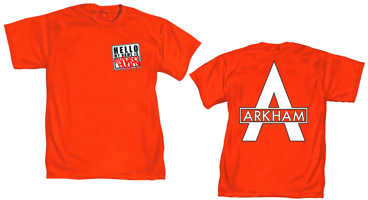 The Dark Knight shows us the skeletons in his closet with these three great new shirt designs. Bat-Zombie depicts the lean and mean Batman as depicted by Neal Adams. Joker: Bats featuring art by Jock, shows what happens when you have a bad case of Batman-on-your-mind. Both are imprinted on black 100% cotton heavyweight shirts. Last but not least, we have the special Arkham Asylum: My Name is... T-Shirt. Screenprinted on both front and back, this shirt is another addition to our illustrious line of fine Arkham apparel.