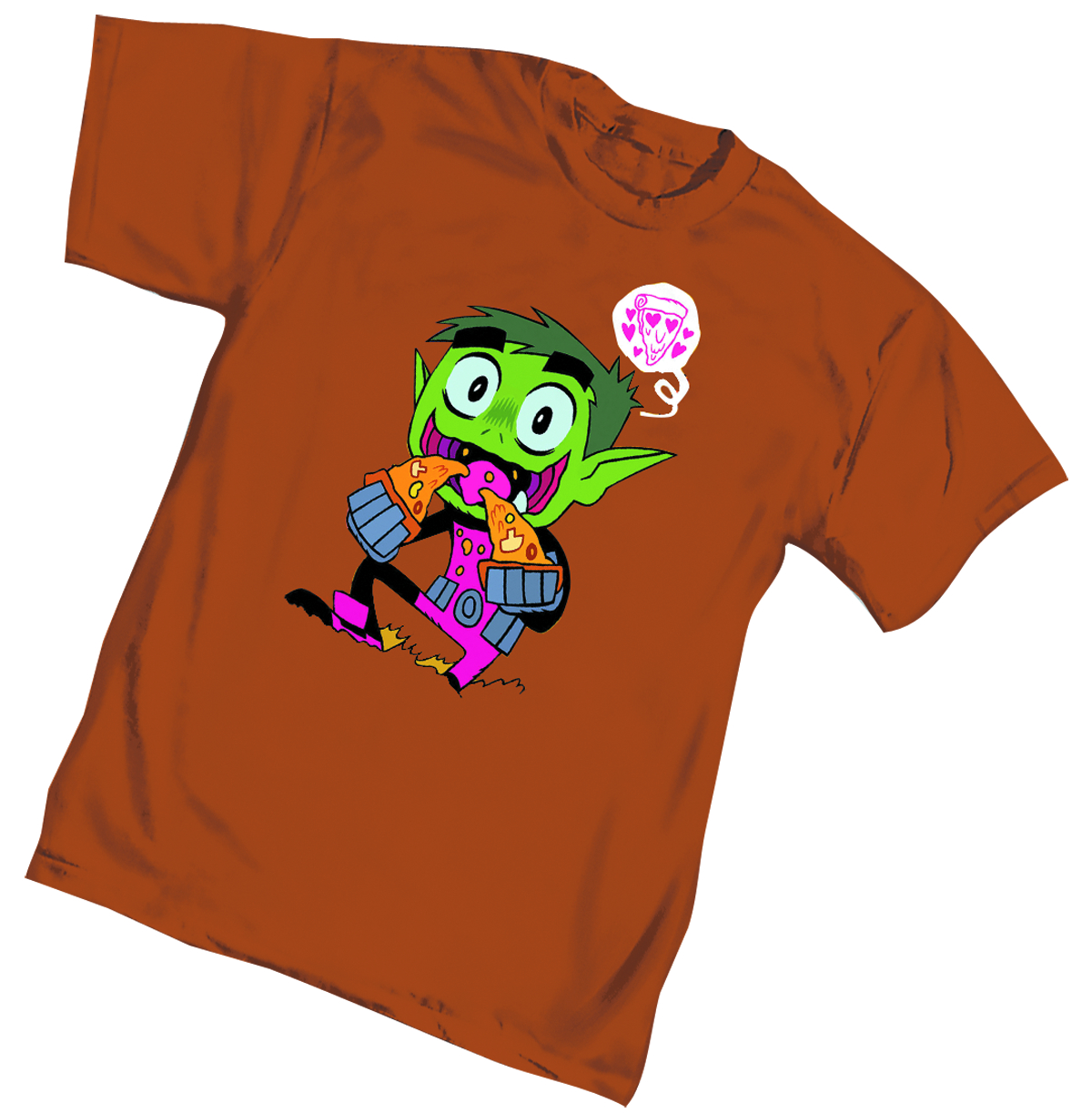 BB shows us his special talents on the new Beast Boy: Pie -Shirt. Daniel Hipps provides the art that's screenprinted in full-color on a exas Orange 100% cotton shirt. AVAILABLE for sale in Canada and U.K.