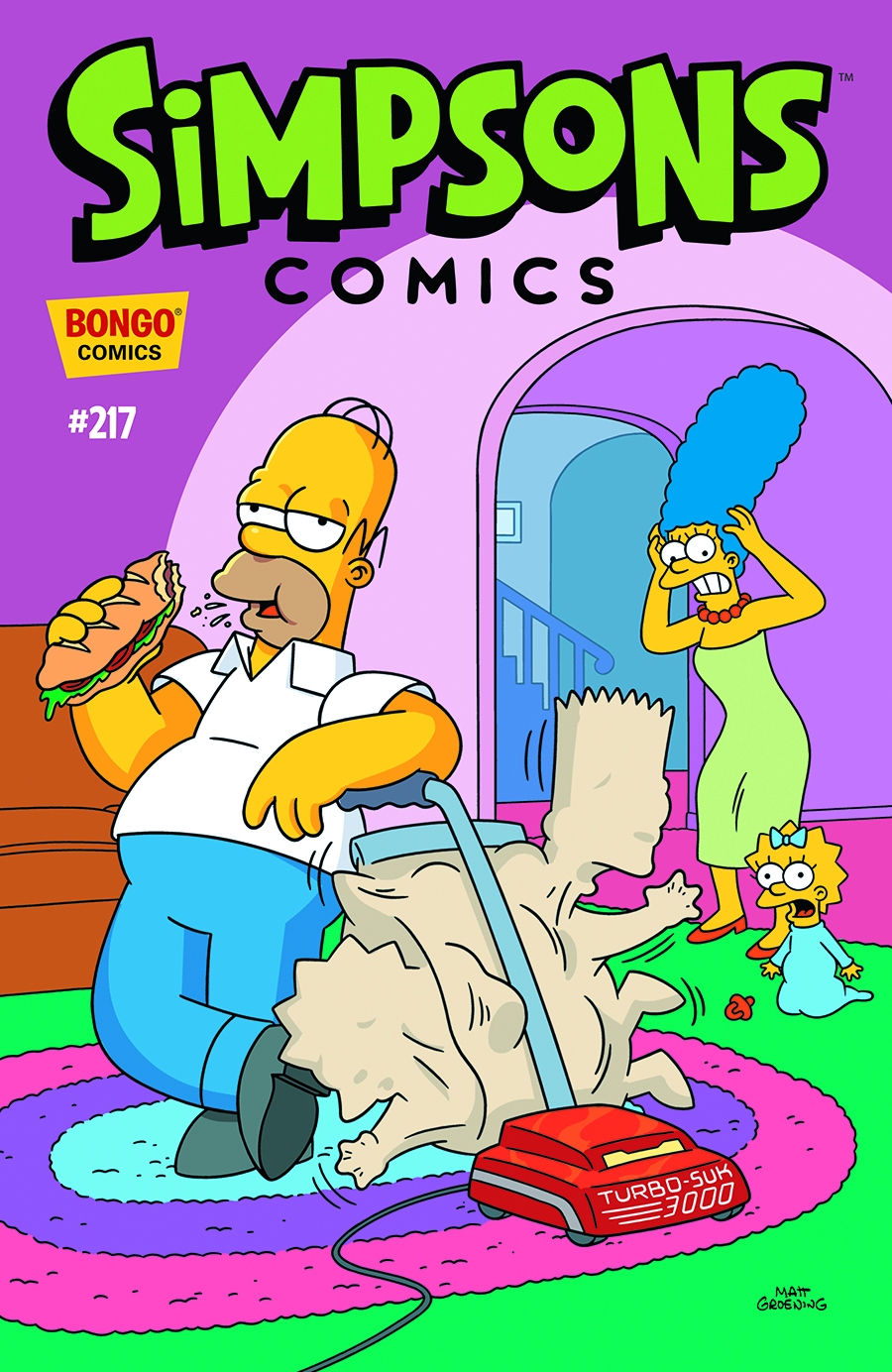Homer accidentally invents the most powerful vacuum cleaner on Earth and teams up with door-to-door salesman Gil Gunderson to peddle his wares. Meanwhile, when Bart and his pals get in trouble and are assigned to help out Groundskeeper Willie, the school handyman has enough extra time on his hands to earn his GED and teacher's credential. In no time, he becomes Springfield Elementary's most sought after substitute teacher. With so much sanitizing getting done, this is, hands down, the cleanest comic you'll read all year!