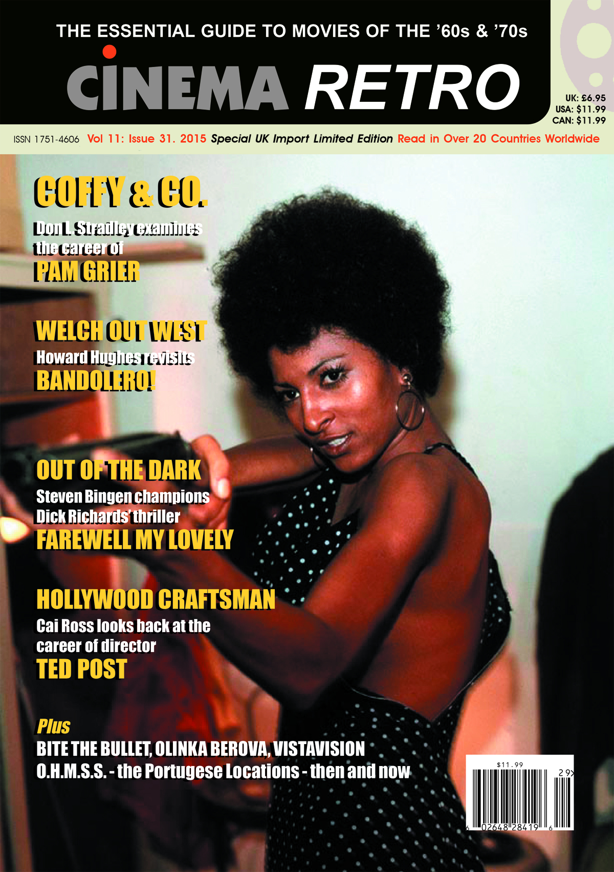 Cinema Retro enters its eleventh year (and 2015) with another cracking issue! Our cover lead is an in-depth career overview of blaxploitation actress Pam Grier featuring lots of "sexploitation" photos! Our "Film in Focus" is the excellent Robert Mitchum remake of