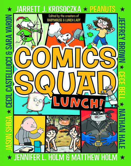 Calling all kidz! Do you like comics? Do you like laughing till milk comes out of your nose?! Look no further--do we have the book for you! All your favorite comic creators are right here in one book. This all-star tribute to classic Sunday comics includes eight sidesplitting, action-packed stories about every kid's favorite subject - lunch! A bust-your-gut laughing graphic novel anthology with original contributions from the most beloved names in the genre: Jennifer Holm & Matthew Holm, Jarrett J.Krosoczka, Sara Varon & Cecil Castellucci, Cece Bell, Jason Shiga, Nathan Hale, Jeffrey Brown, and the Peanuts.