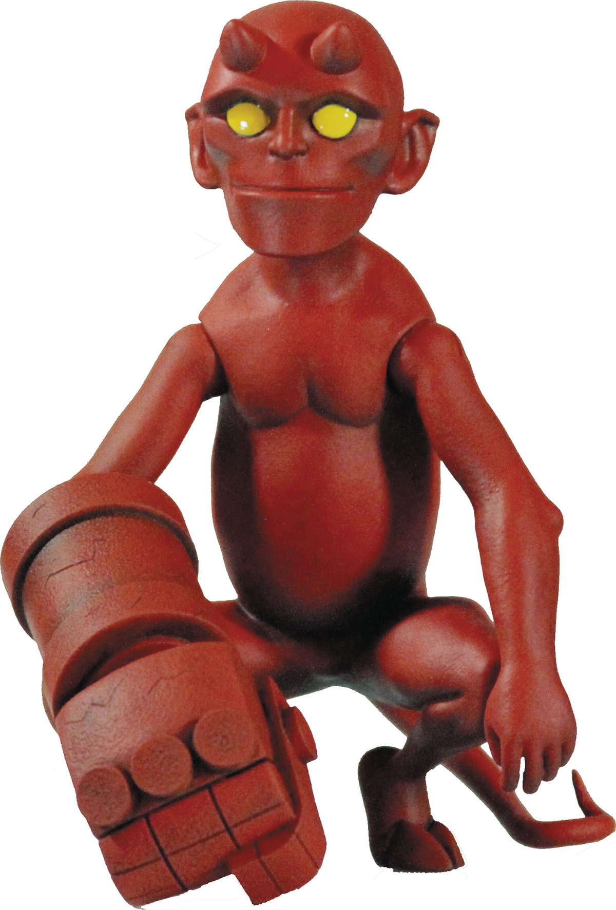 Summoned to Earth on December 23, 1944, the half-demon child known as Anung Un Rama was intended to change the tide of WWII in Germany's favor. Instead he was discovered by US soldiers, given the name Hellboy, and would go on to fight the forces of evil as an adult. Working closely with creator Mike Mignola to design the definitive baby Hellboy, the figure features 6 points of articulation (neck, tail, shoulders, right elbow, and right wrist), and the cutest li'l face Hell ever spawned. Now's your chance to hold this little bundle of demonic joy in your own hands!