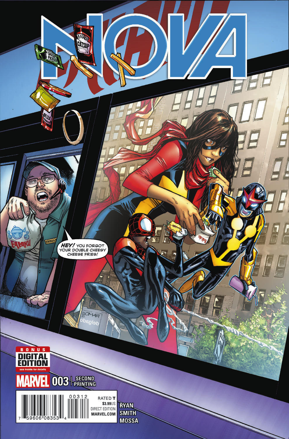From Marvel Comics. Nova in New York! Sam Alexander and the other All-New, All-Different Avengers team up, and love might be in the air! Featuring guest stars Miles Morales and Kamala Khan! Rated T. Scheduled to ship 01/27/16. (161)
