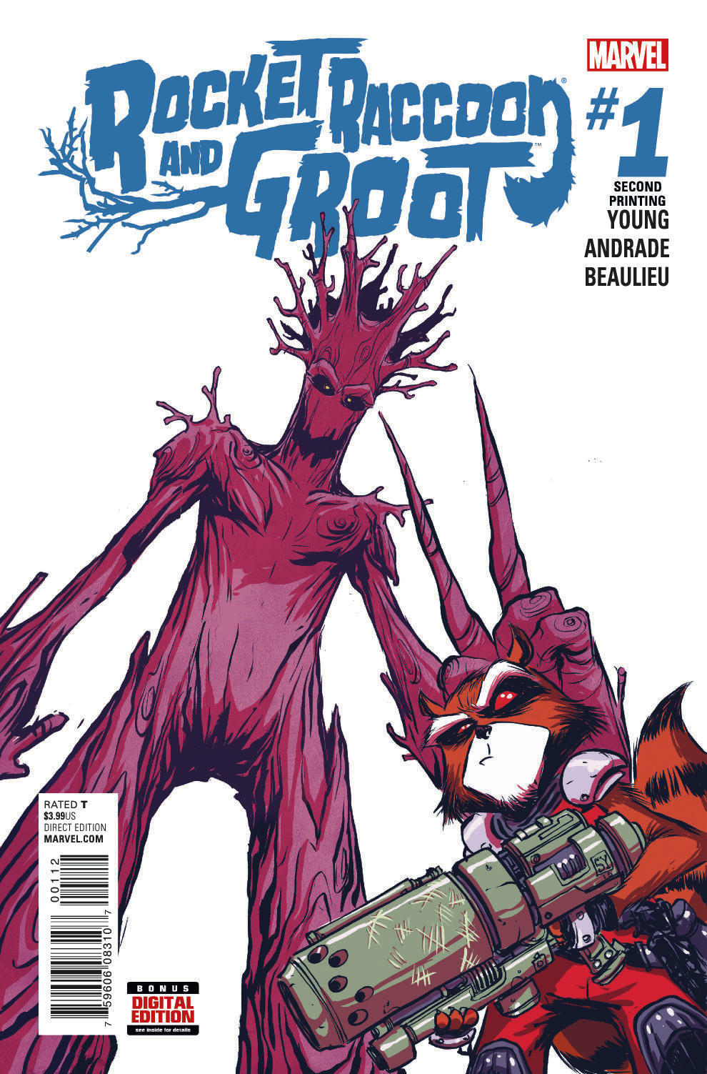 Rocket Raccoon?! How did this happen? Seriously, how did this happen, you guys??? Groot knows, but he's not talking! Well, he is talking, but all he's saying is...oh, you know. Diabolical danger, madcap mysteries and astonishing adventure abound as Skottie Young and Filipe Andrade return to tell tall tail tales of Rocket Raccoon, now with the adorable, arboreal Groot along for the ride! If you love adventure, animals, outer space and just about anything in between, this is the book for you! Rated T. Scheduled to ship 01/27/16. (161)