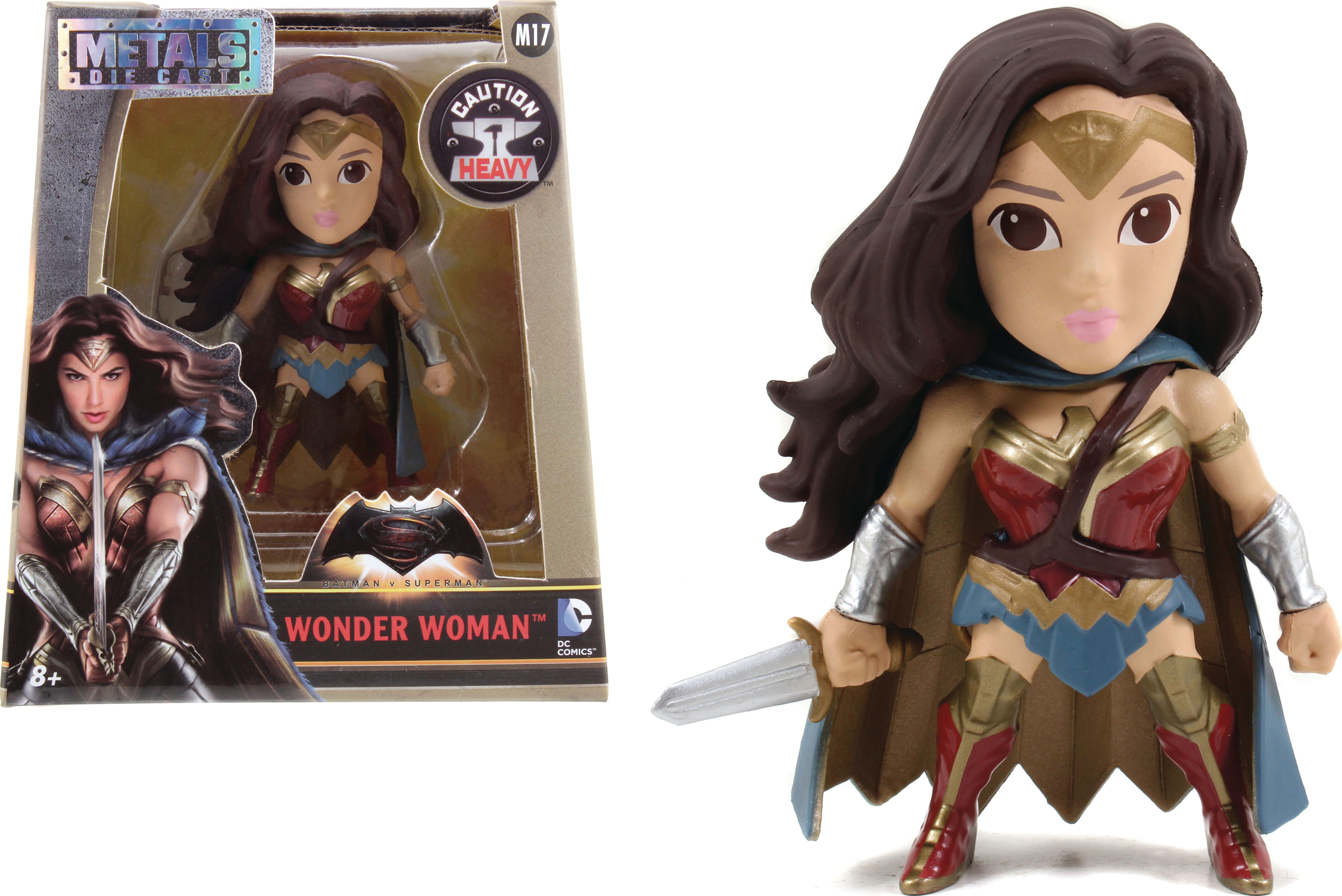From Jada Toys. Bring the action home with the Amazonian super-heroine, Wonder Woman! Standing 4 inches tall and weighing in at just under half a pound, this collectable die-cast figure is sure to be a standout in any collection. Collect them all to assemble your own hero team because the weight of the world is in your hands!
