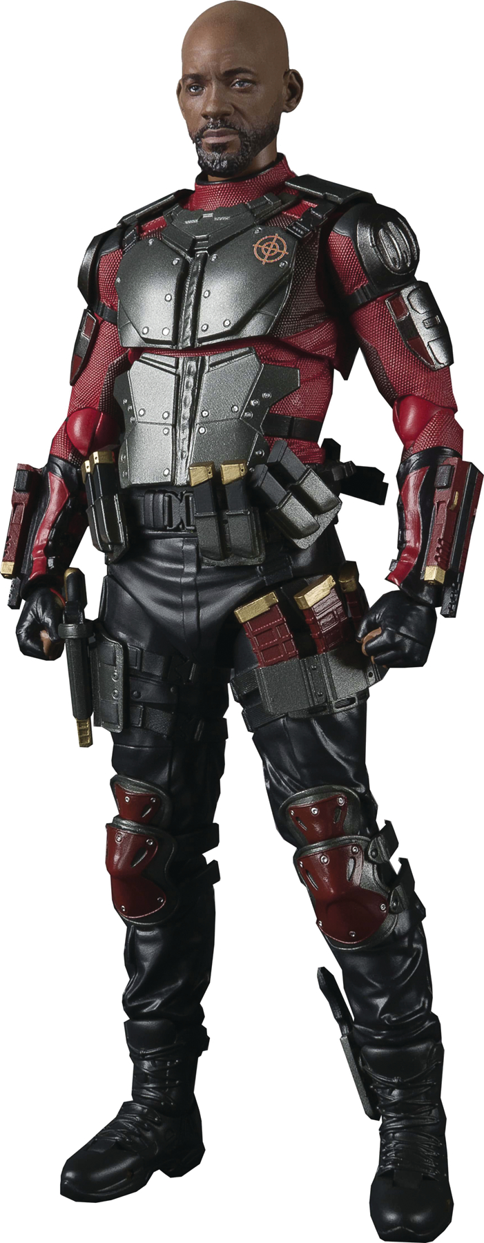Suicide Squad brought to you by Tamashii Nations' top articulated figure brand S.H.Figuarts. Using top of the line digital print technology, you get a dead ringer of Will Smith as Deadshot. Minute details from Deadshot's suit are also recreated down to the last minute detail. Set includes interchangeable hands (x4), interchangeable head piece, and weapon.