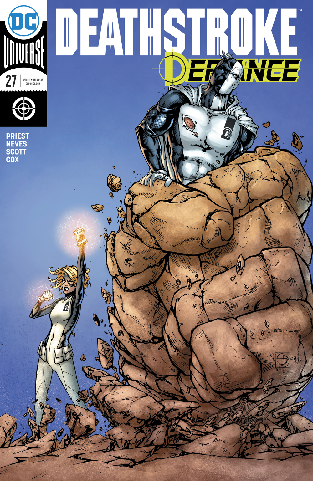 "The Fall of Slade" part two! Father and son clash when Jericho flies to rescue Deathstroke from Jericho's ex-the resurrected Dr. Ikon! Meanwhile, Terra is summoned to an ambush by the Forgotten, the deadly leader of the White Lotus, and worlds collide as the New Super-Man demands Deathstroke's arrest!