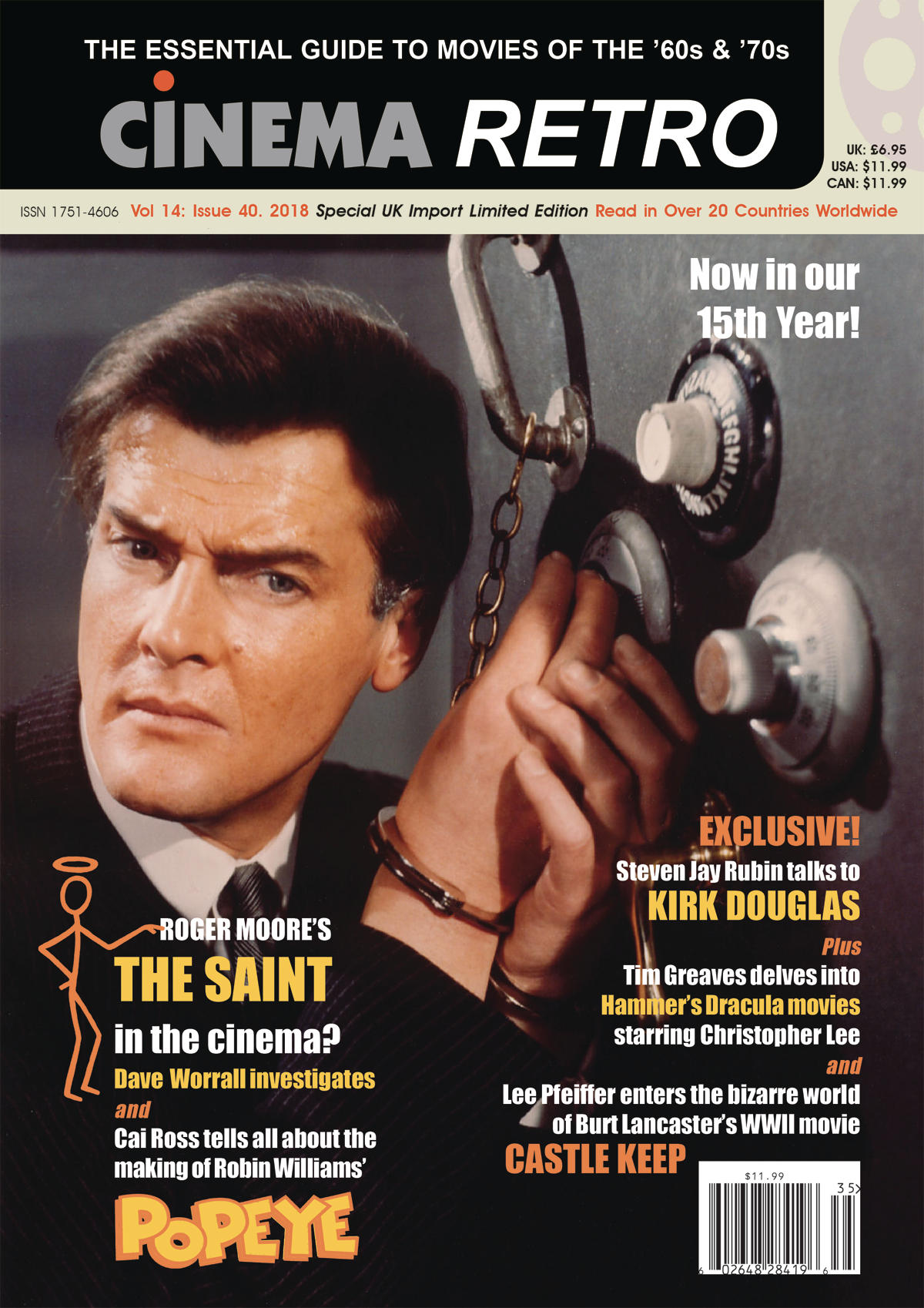 Our first issue of the year - our 15th in print - has a terrific 13-page feature on the "rise and demise" of Christopher Lee's Dracula in the seven films he made for Hammer, and Steven J. Rubin interviews Hollywood Icon Kirk Douglas, who turned 100 last year! Our "Film in Focus" is the bizarre WWII movie