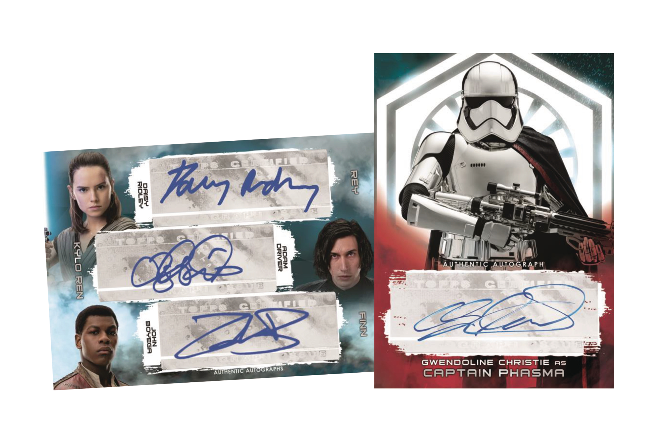 Star Wars: The Last Jedi on 100 base cards, plus parallels, inserts, and exciting hits to chase! 100 base cards tell the story of the latest installment plus Autographs (Single, Dual, Triple and 6-person), Rare BB-8 Shaped Sketch Cards, Commemorative Patch Cards, Autograph Commemorative Patch Cards, 1-of-1 Printing Plates, dazzling parallels and much more. 8 cards per pack, 24 packs per box.