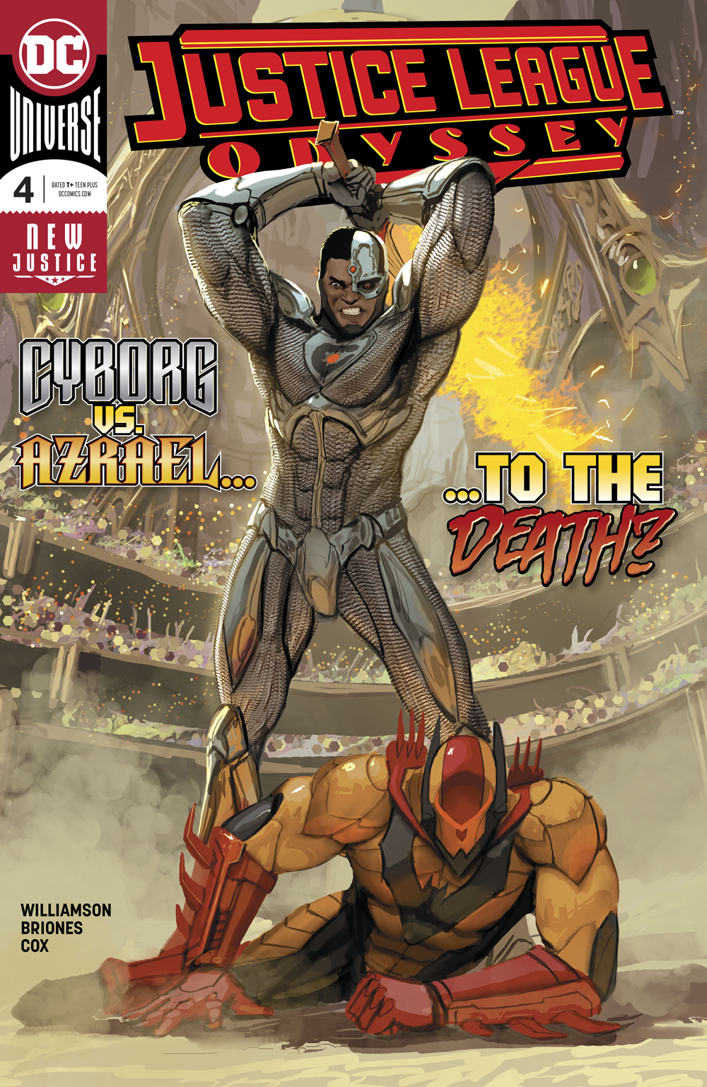 Next stop on the Odyssey-Planet Cyborg! The space-faring Justice League travels to a new world that worships Cyborg, and meets a population that's obsessed with body modification in preparation for a galactic war. Cyborg and Azrael clash over whether to stop the simmering standoff or continue following the clues left behind by Darkseid. Elsewhere, Starfire and Green Lantern Jessica Cruz infiltrate the society's upper crust in order to decipher the second language on the codex.