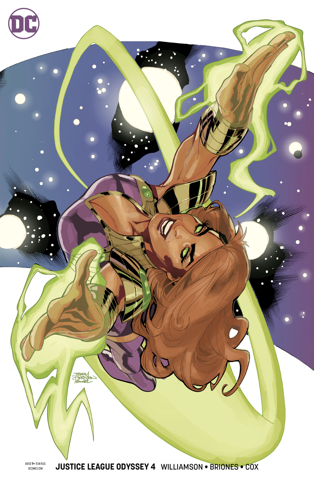 Next stop on the Odyssey-Planet Cyborg! The space-faring Justice League travels to a new world that worships Cyborg, and meets a population that's obsessed with body modification in preparation for a galactic war. Cyborg and Azrael clash over whether to stop the simmering standoff or continue following the clues left behind by Darkseid. Elsewhere, Starfire and Green Lantern Jessica Cruz infiltrate the society's upper crust in order to decipher the second language on the codex.