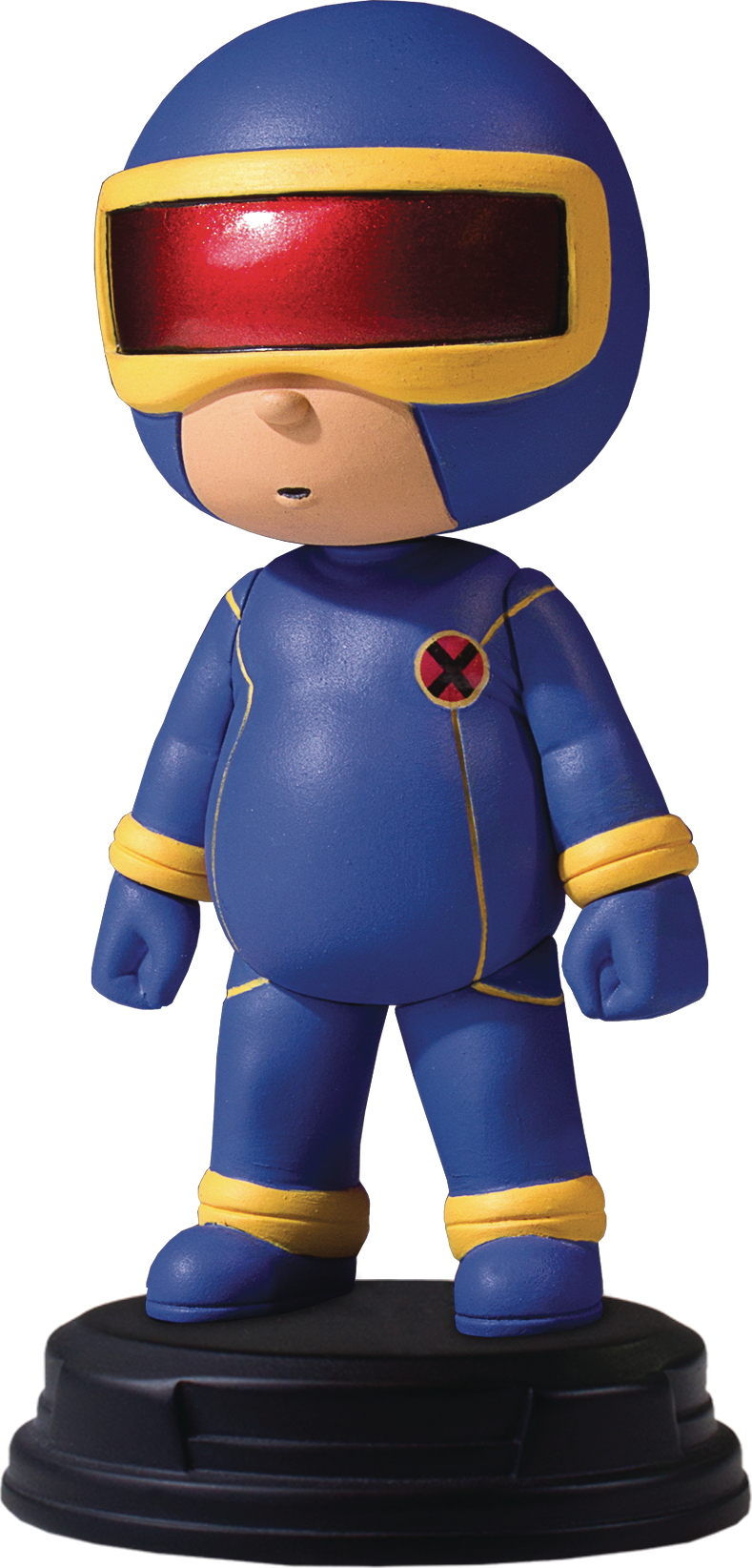 'Cyclops is a mutant with the ability to fire force beams from his eyes. Professor Charles Xavier, who had been observing Scott's development, discovered the only way for Cyclops to control the beams is through the use of ruby quartz lenses. Professor X had some special glasses made for Cyclops and took him under his wing to train him in his powers at his special school for mutants. Cyclops is the 19th release in Gentle Giant's popular Marvel animated statues and is based on the art from Giant Size Little Marvel AvX comic book. Cyclops is decked out in his blue and gold X-men uniform with a cool reflective visor. The Cyclops Statue was digitally sculpted and carefully printed on state of the art 3D Systems 3D printers. The high-resolution prints were then used in the creation of prototypes needed to produce this animated collectible. Each animated statue is hand-cast, hand-painted, and hand-numbered with a limited edition Certificate of Authenticity.