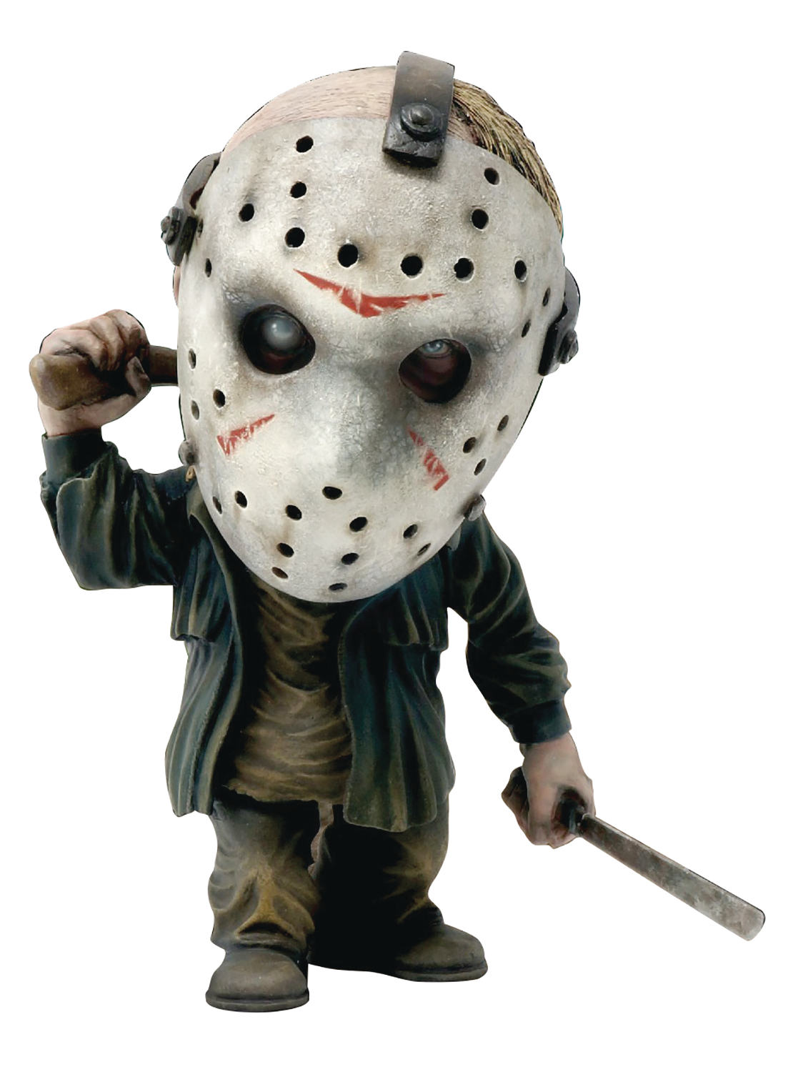 From Star Ace Toys. Star Ace is proud to introduce a new series of collectibles - the Defo-Real Series (DF). Standing 15-25 cm tall, these soft vinyl statues feature accurately sculpted, oversized heads on realistic bodies in dynamic poses. Characters from modern horror movies are particularly suited to being represented in this format and Star Ace looks forward to bringing you your favorites.The DF Jason by is about 15 cm (6 inches) tall, carrying a machete in one hand and an axe over his shoulder. His horrifying face is hidden behind a removable hockey mask. The Deluxe version comes with a metal bear trap on a chain.