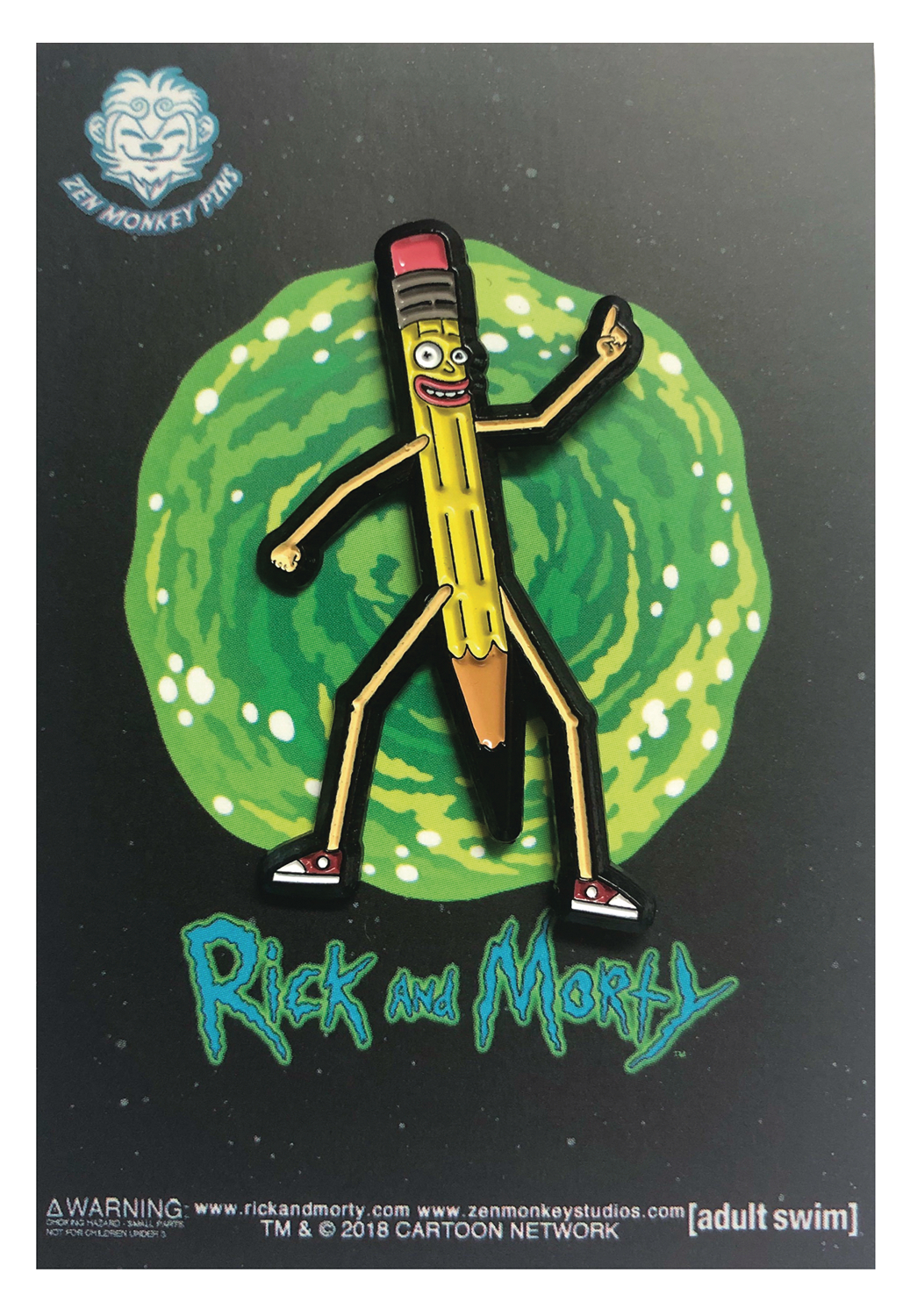 From Zen Monkey Studios. Pencilvester was a lifelong friend to Rick and Morty... or that's what the alien shape-shifting parasite wanted them to think. They of course murdered him. But you can honor his memory as this 2" tall pin packaged on a colorful backing card.