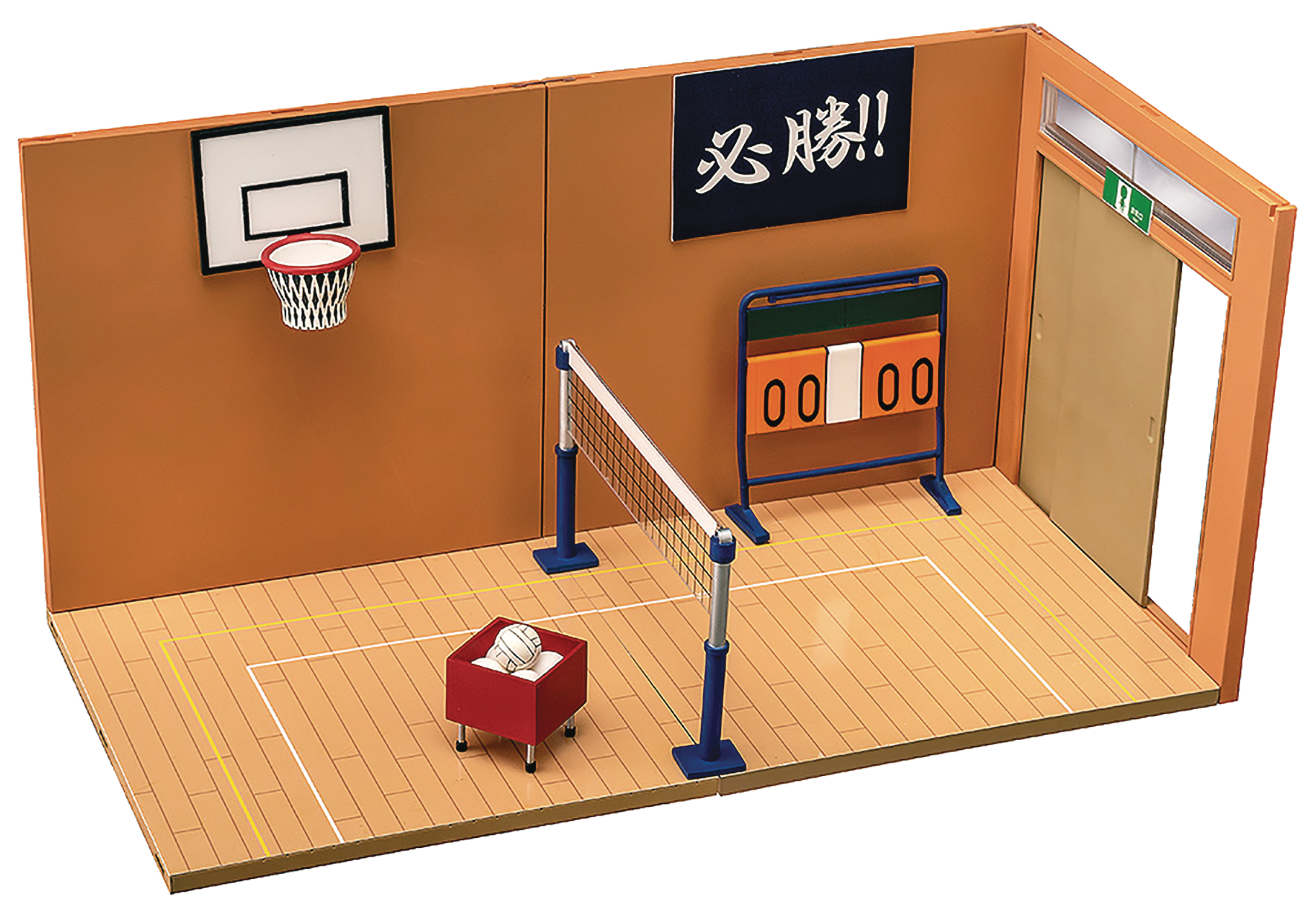 From Phat! An extension set for your Nendoroids! Another diorama with various items is coming from Phat Company to expand the world for your Nendoroids! Perfect for sporty characters, the gymnasium play set includes one extra wall and floor piece as compared to previous play sets to perfectly capture the wide open feeling of a gymnasium! The A set features a scoreboard and banner, allowing you to recreate the fun of a heated match on the court, plus the entrance room door can be opened and closed! Combine the A and B set to make an even larger gymnasium. (The volleyball net can be extended with included parts) This set contains: Volleyball, ball holder, basketball hoop, volleyball net set, scoreboard, banner, volleyball net extension parts Please note that no Nendoroids are included in this set.