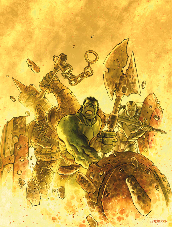 Accompanied by Caiera the Oldstrong and Hiroim the Shamed, the Hulk heads into the hold of the Shadow Elders to learn if he truly is the legendary savior known as the Sakaarson - or just another angry monster. Also - secrets revealed about the Great Portal! The final showdown with the Spikes! Elloe makes a shocking decision! And the Hulk smashes and smashes and smashes some more! Featuring pencils by the brilliant Carlo Pagulayan as well as a slew of pages by a surprise guest artist!