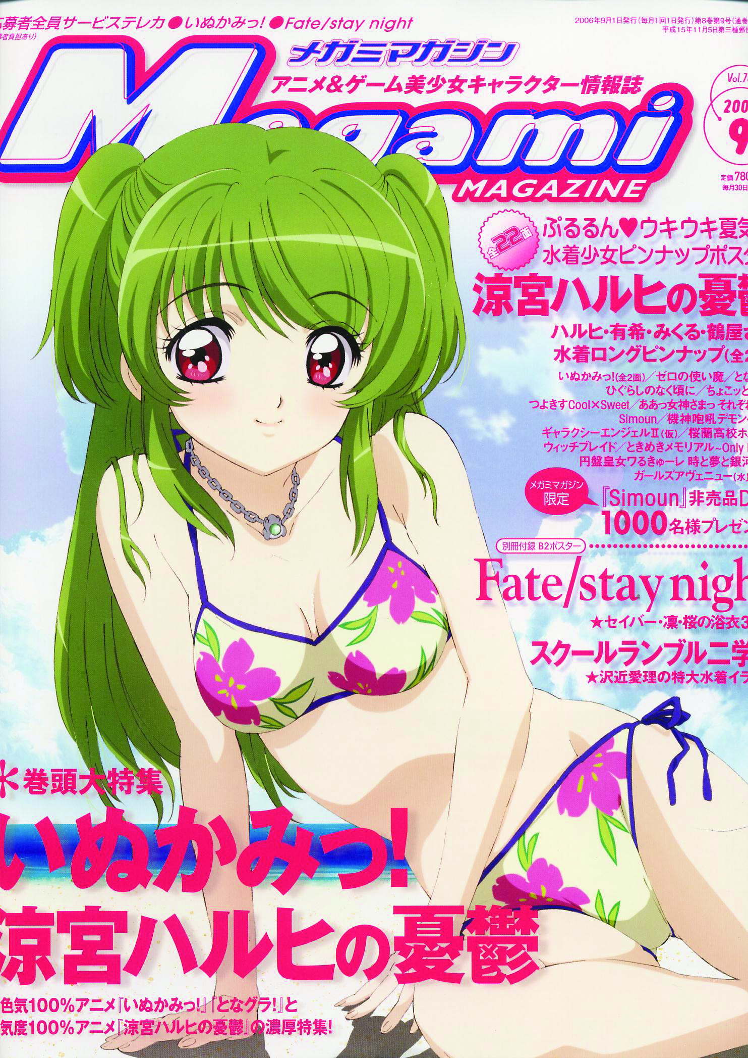 Megami is the best Japanese anime magazine for tons of free giveaways, as well as full-color artwork and posters! Includes telephone cards, punch-out "character stands", stickers, and much more! Japanese text.