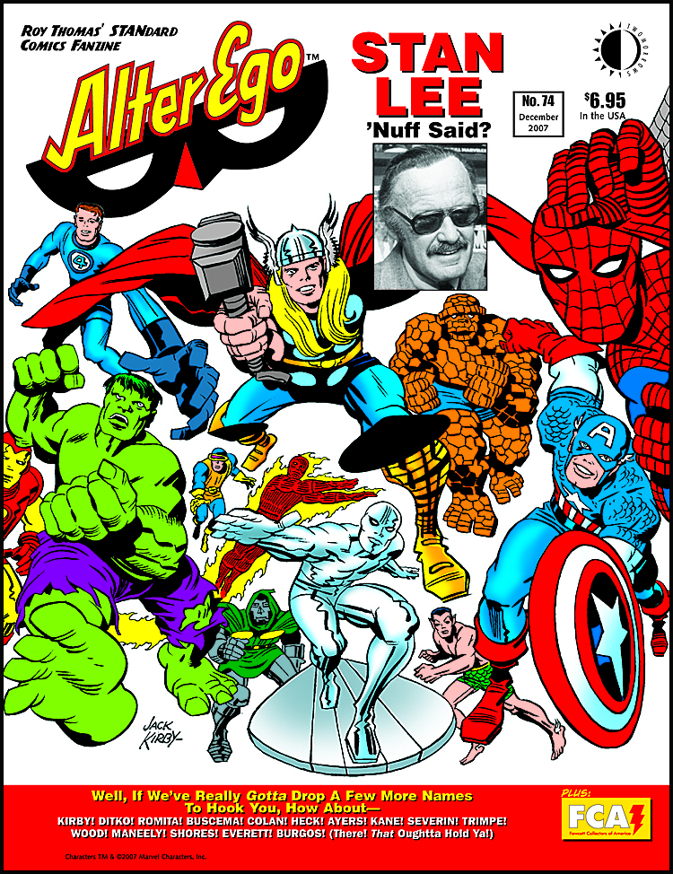 The Stan Lee Special! This issue is dedicated to "The Man" for his 85th birthday. Behind a powerhouse cover by Jack Kirby, it features classic (and virtually unseen) interviews with Stan, and tons of rare and even unseen art by the likes of Kirby, Romita, the brothers Buscema, Ditko, Colan, Heck, Ayers, Maneely, Shores, Everett, Burgos, Kane, and the Severin siblings. Also, there's P.C. Hamerlinck's FCA (Fawcett Collectors of America) with Marc Swayze, C.C. Beck, Michael T. Gilbert, Mr. Monster's Comic Crypt, and more! Edited by Roy Thomas.