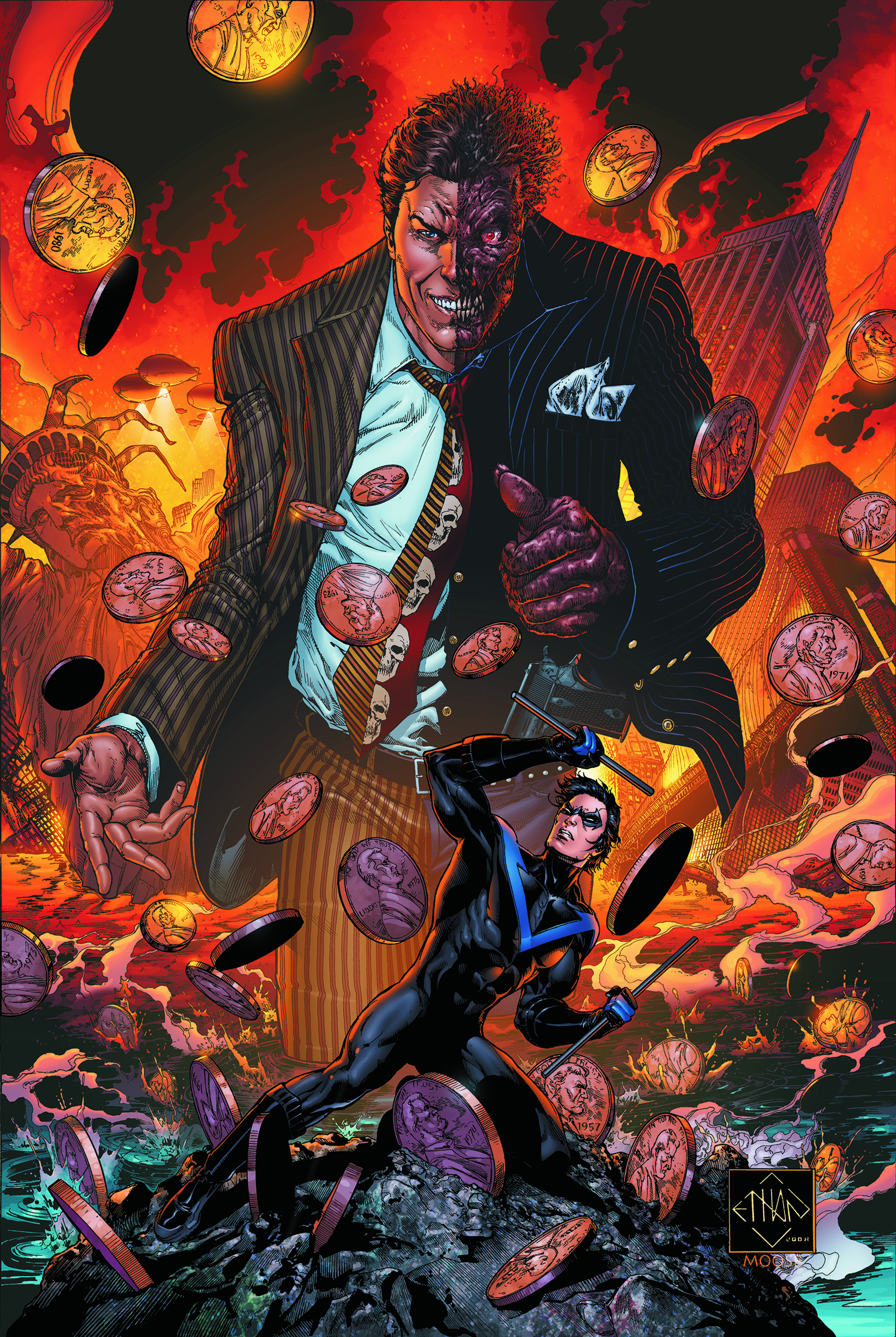 Nightwing has saved New York City from Two-Face, but that doesn't mean that he's saved himself - or that Two-Face is through with him. Nightwing will be forced to confront the madman in Arkham Asylum then face dire changes to his personal life as he deals with the aftereffects of "Batman R.I.P." and makes the ultimate leap!