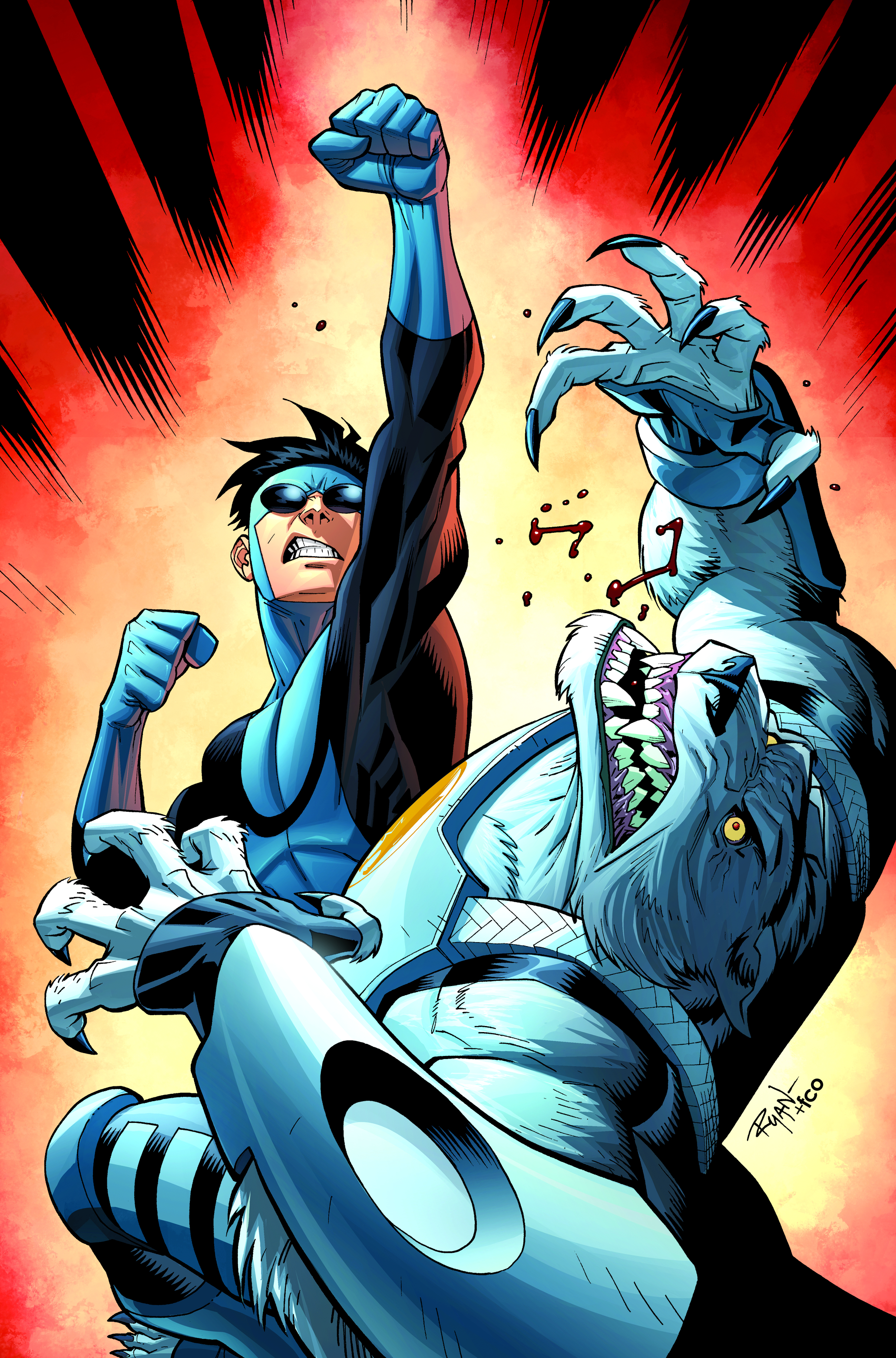 GUEST-STARRING THE ASTOUNDING WOLF-MAN! In part one of a two-part crossover, Invincible sets off on a mission to bring the fugitive Wolf-Man to justice. To be continued in THE ASTOUNDING WOLF-MAN #11.