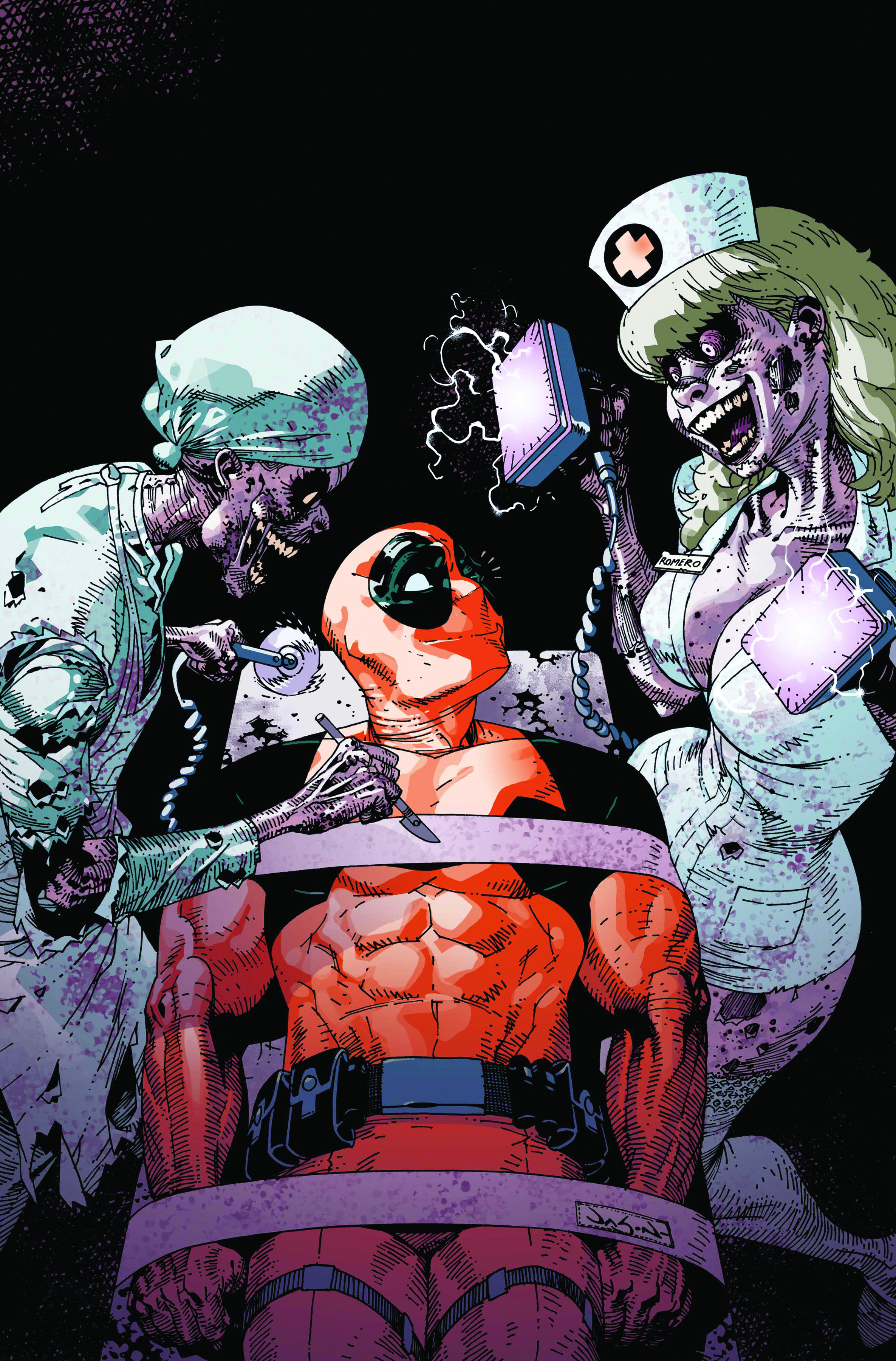 This is what Deadpool has to resort to, only days after single-handedly saving the entire planet from Skrulls? Oh, that's right-nobody knows about that...Deadpool didn't even want this job. But here he is anyway, in some dank corner of Eastern Europe, going toe-to-toe with an undead plastic surgeon and his flesh-eating clientele, contracted by the head of a greasy paramilitary unit to avenge the zombification of the guy's young, ex-model trophy wife -- and all because Wade's dead broke.