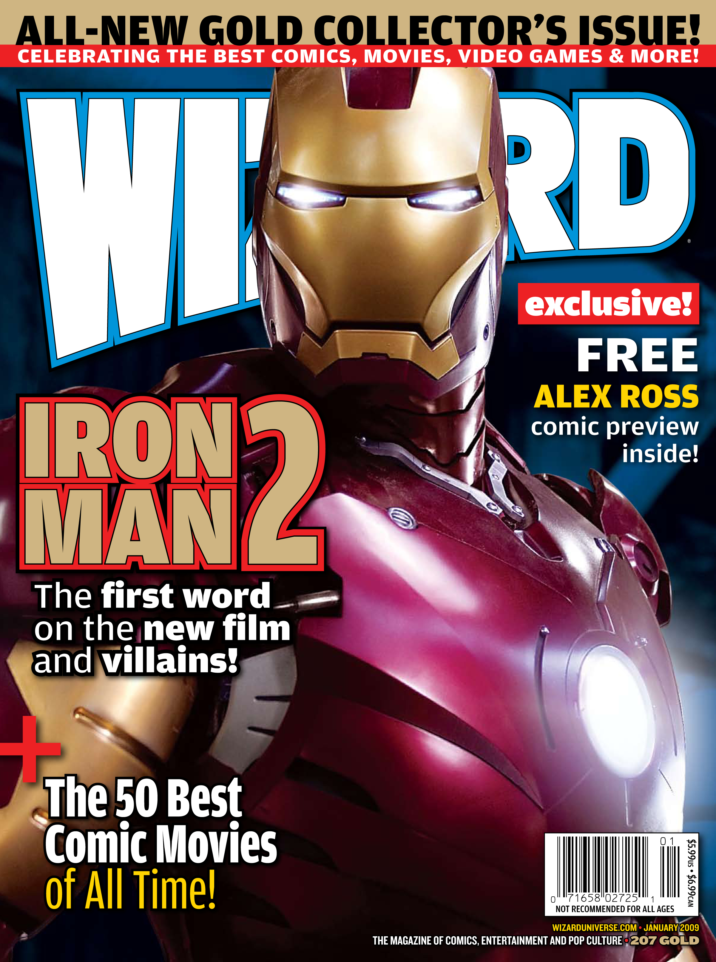 PRODUCT UPDATE (110508): Wizard Entertainment has changed the title of Wizard #207 to Wizard Magazine #207 Gold, and the title also contains additional content. Wizard Magazine #207 Gold now includes an exclusive preview of Dynamite Entertainment's The Death-Defying 'Devil, an interview with Mark Millar, a Justice League feature with James Robinson and the return of "True Tales of the Wizard Bullpen".