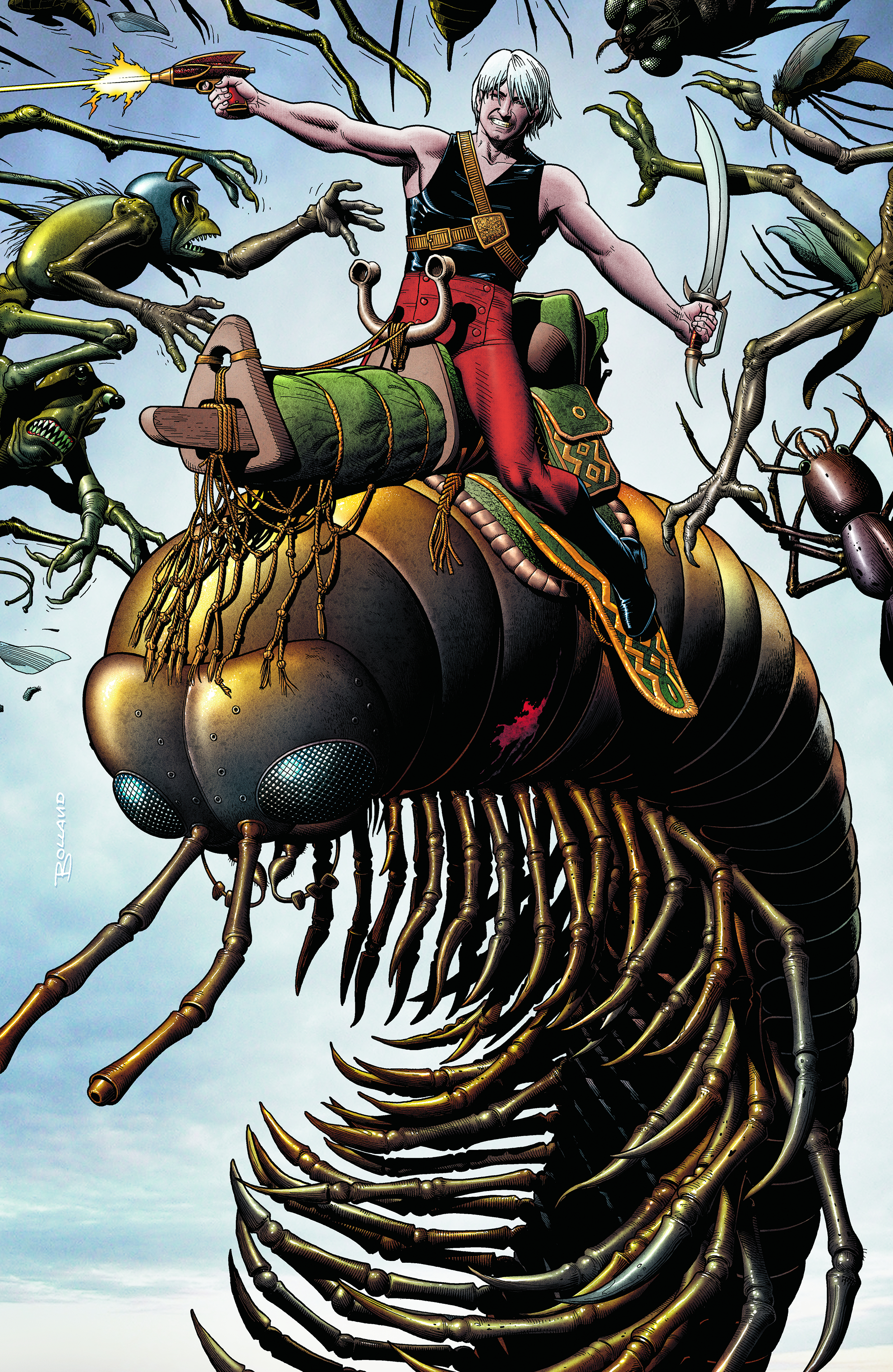New storyline! A new era for JACK OF FABLES begins in earnest when Jack Frost and his wooden owl MacDuff find themselves in a strange new world - a world with giant millipede mounts, ancient space elevators and ray guns that go zish! But things really get interesting when a scantily clad witch leads Jack to an ancient temple containing one of the most powerful weapons ever crafted: The Fulminate Blade.