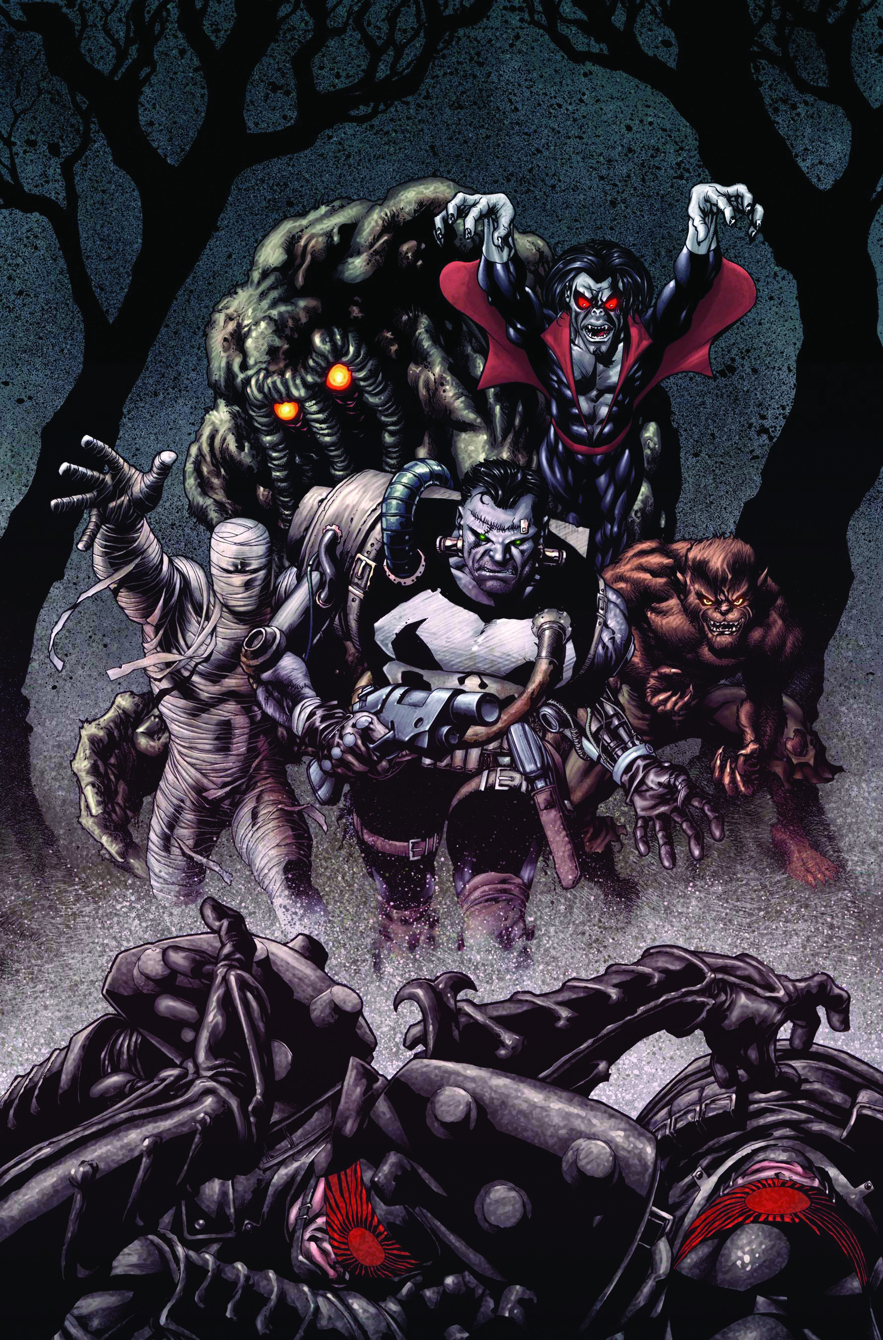 "FRANKEN-CASTLE," PART 2-The Punisher is dead, so who, or what, is the giant patchwork monster skulking through the tunnels under New York? And what do those strange armored Japanese hunters tracking him want? Criminals are no longer being killed; they are simply vanishing into thin air. Listen closely, you can hear their pleas far below the streets. Those forgotten by society have a new protector. The Legion of Monsters has found a new leader.