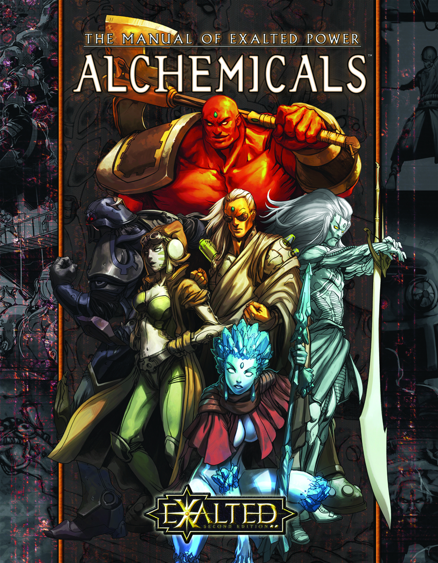 The Alchemical Exalted are the exalted created within Autochthonia in order to protect and preserve Autochthonian society. Unlike the Exalted of Creation, the Alchemicals are made in special vats, and are not subject to the Great Curse, instead subject to increased communion with Autochthon himself. This new sourcebook for