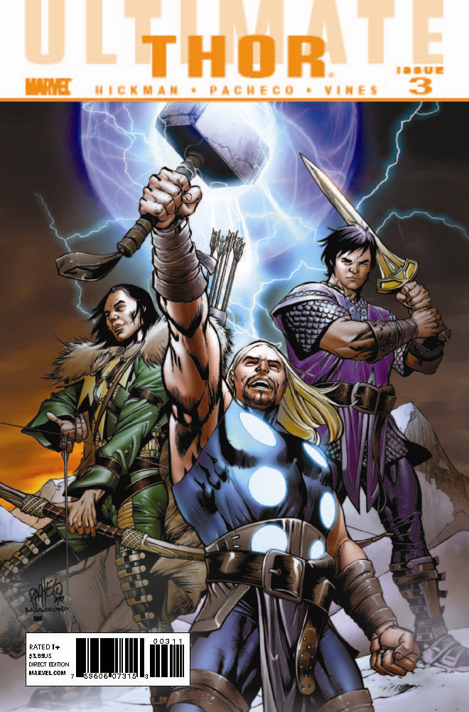 Thor's thrilling origin continues! Betrayal rocks Asgard as predators breach its walls! Will Thor be able to protect his home and prevent Ragnorak? Or are some things just inevitable? Rockstars Jonathan Hickman and Carlos Pacheco take you on an epic tale of duty and destiny that spans decades and worlds. Don't miss the adventure that started it all!