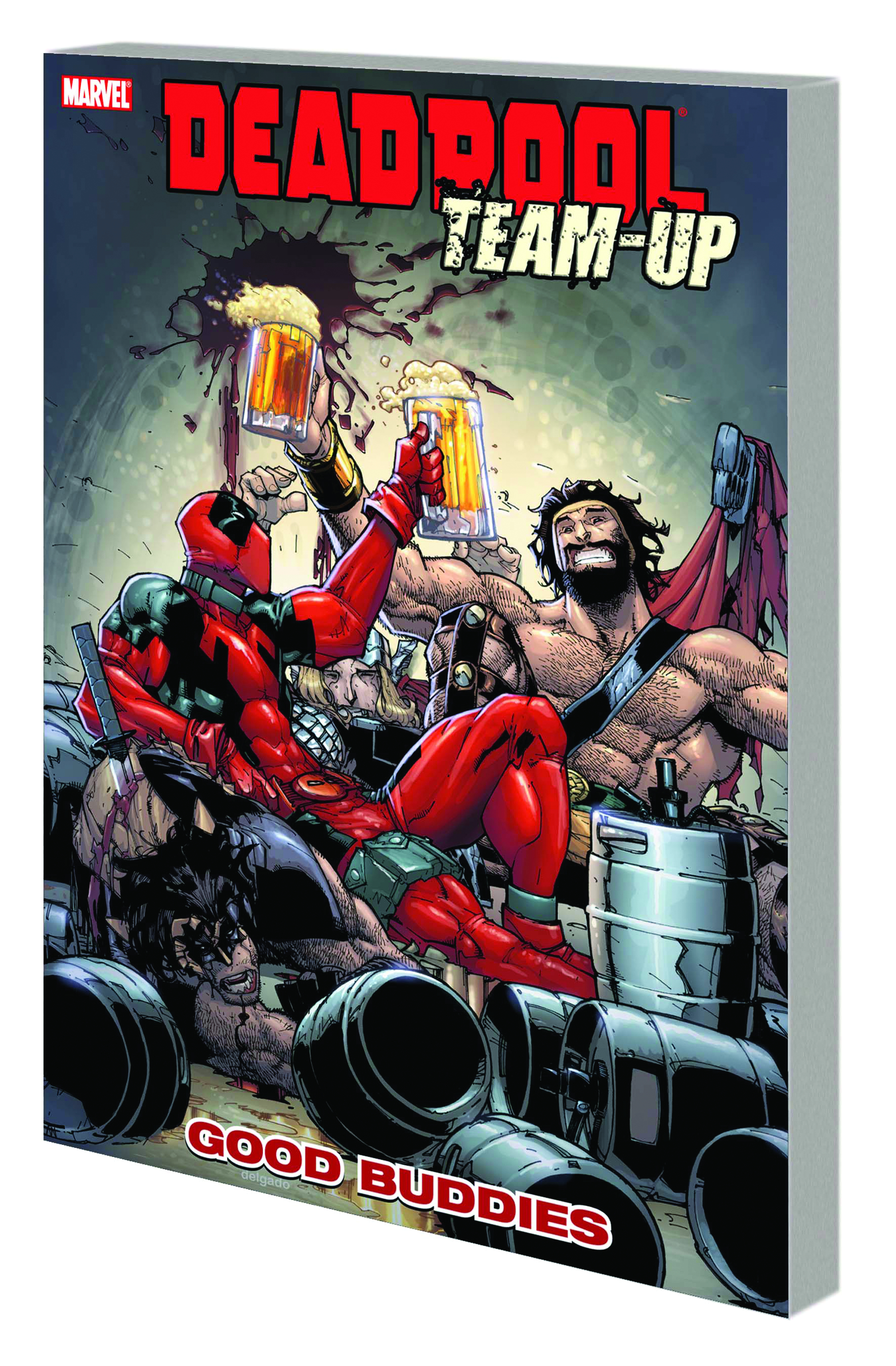 Evidently, the voices in his head aren't enough company for Deadpool! This collection of riotous, ridiculous and outright reprehensible team-ups pairs Deadpool with Marvel's finest characters and creators as the irrepressible mercenary basks in his own popularity. Don't expect 'Pool to hog all the glory, though. He'll share the spotlight with his closest buddies, and drive them all bonkers in the process. Featuring guest appearances from a roster of Marvel comics all-stars including the Incredible Hercules! Not one, but two Ghost Riders! The Punisher! US ACE! (Who?) The Zapata Brothers! (From Moon Knight?!) And IT! The Living Colossus! (Seriously? That one's a joke, right?) Collecting DEADPOOL TEAM-UP #899-894 and MARVEL SPOTLIGHT: DEADPOOL.