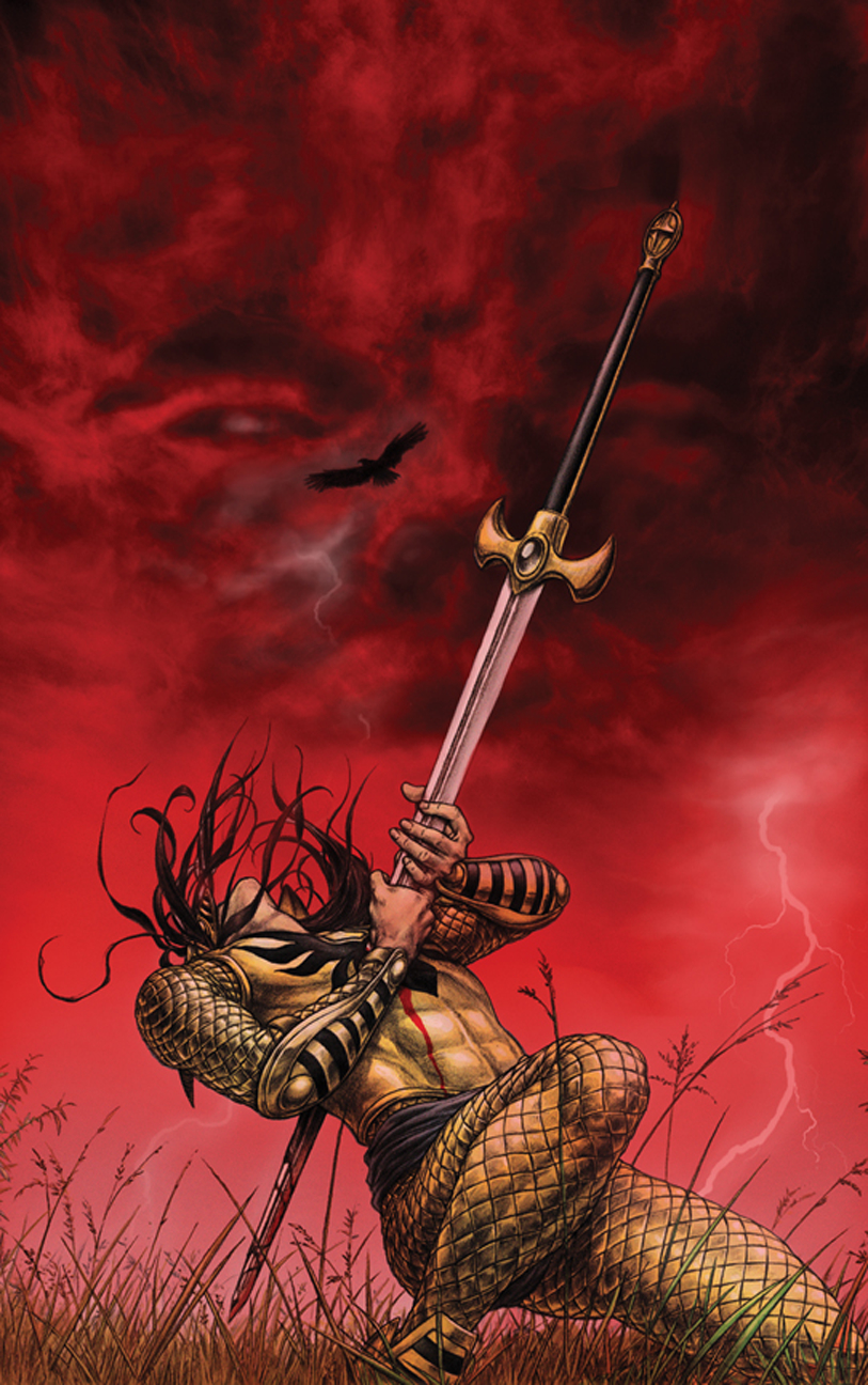 It wasn't a coincidence that the Shining Knight found herself in Little Spring as the Horde massed at the village gates. She's on a quest, and has been all her long life - whether she's known it or not! Now, a powerful vision will reveal to her the true stakes of the battle for Little Spring and pull back the curtain on one of the biggest secrets in the DC Universe! Don't miss "Merlin Watches The Storm," featuring guest art by the sensational Mike Choi (X-Force)! And yes, "storm" is a hint.