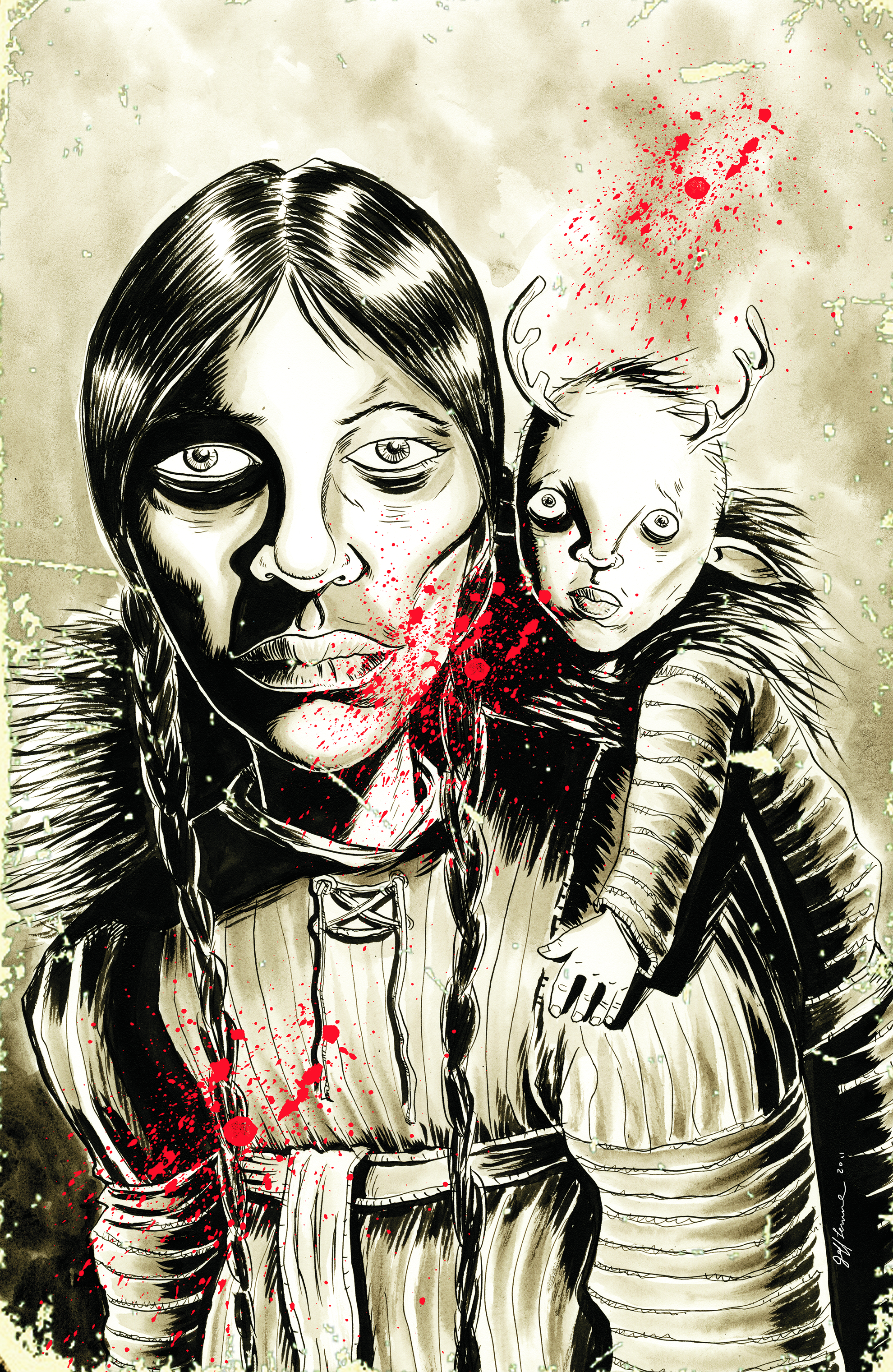 "The Taxidermist" concludes as Thacker leads his crew on an all-out assault on Simpson's camp in an attempt to slaughter the mysterious antlered child! But will the child live on, or will the plague spread? Jeff Lemire and Matt Kindt conclude their mini-epic in bloody fashion with implications that will affect Gus, Jepperd and more.
